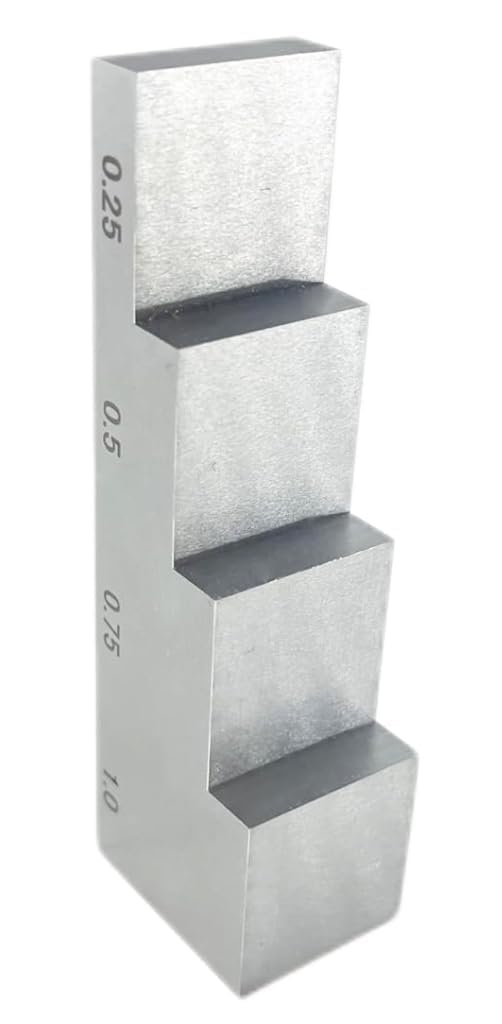 AHYJR 0.25" 0.5" 0.75" 1" Ultrasonic Test Blocks 6063 Aluminum Step Wedge Calibration Block for Ultrasonic Thickness Gauge Thickness and Linearity CalibrationApplication: The 4 Step Ultrasonic Calibration Blocks Can Apply to Ultrasonic Thickness Gauge in NDT Testing Thickness and linearity Calibration Specification: Model: 4 Step Ultrasonic Calibration Blocks Material: 6063 Aluminum Thickness:0.25" 0.5" 0.75" 1" Width: 3.2" x 0.8"