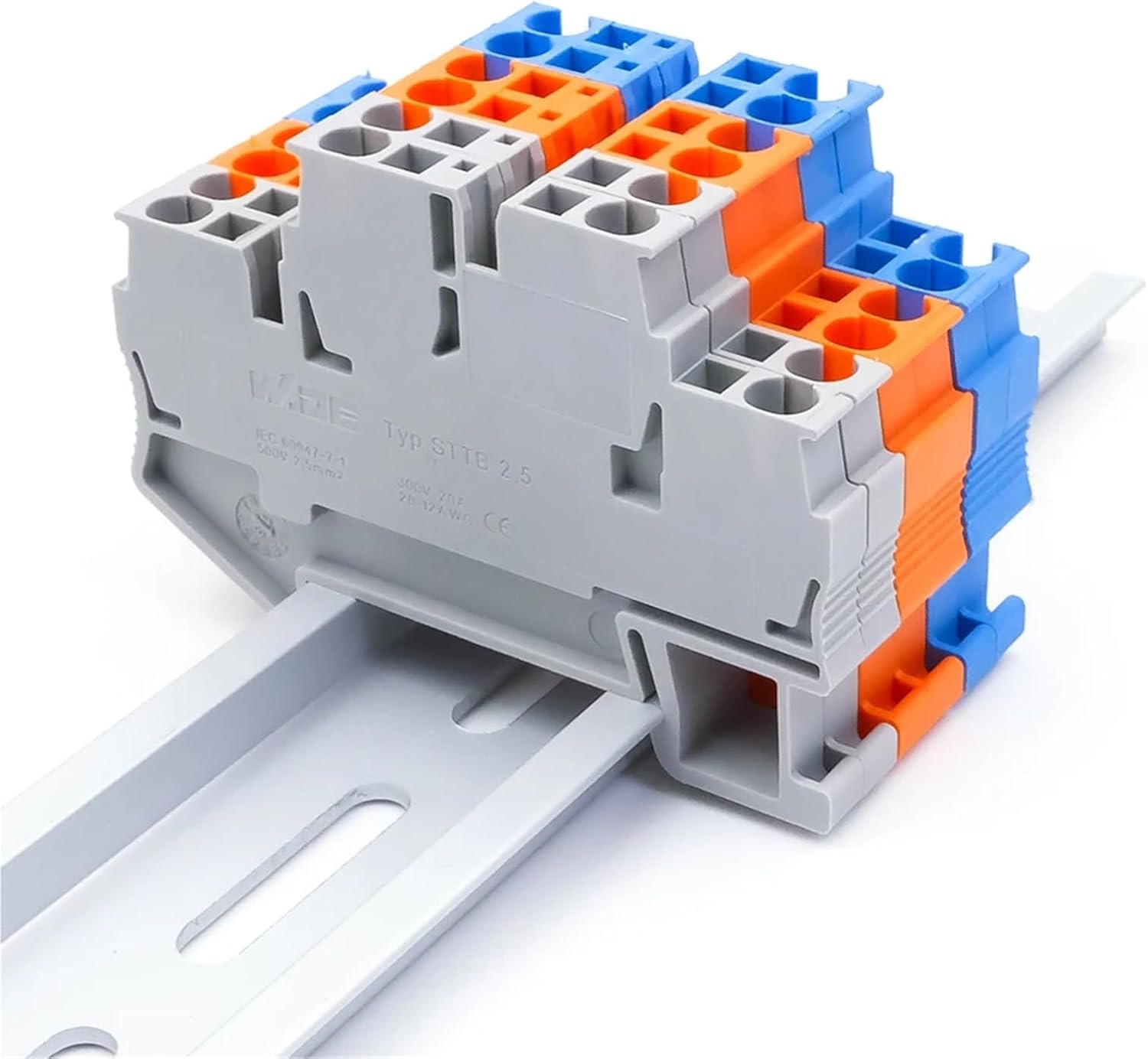 Wire Terminals10Pcs STTB 2.5 Double Layer Terminal Block 2.5mm DIN Rail Space Efficient Electrical Wiring==========Conductor Size : 24 - 12 AWGNumber of Contacts : 1 - 10Model Number : STTB-2.5Type : Screw