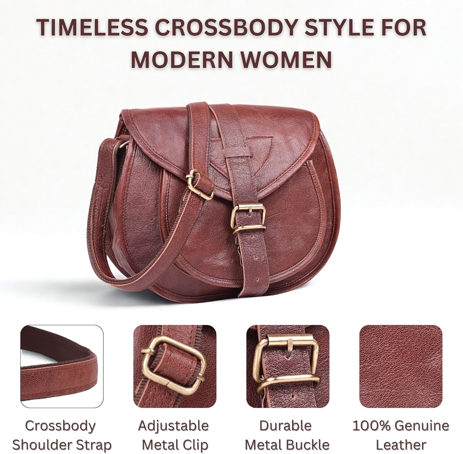 Elevate Your Everyday Style With This Beautifully Handcrafted Genuine Leather Purse, Designed To Complement The Modern Woman’s Wardrobe While Celebrating Timeless Craftsmanship. Whether You're Heading To Work, Brunch, Or A Weekend Escape, This Womens Leather Purses Blends Elegance With Practicality, Making It One Of The Must-have Leather Handbags For Women 2025. Crafted from High-quality Real Leather, This Vintage Leather Crossbody Bags For Women Exudes Durability & Sophistication. Its Rich, Earthy Tone and Structured Silhouette Make It A Standout Piece Among Ladies Vintage Purses and Ideal For Those Who Appreciate The Charm Of Satchel Bags For Women Crossbody. The Texture Of The Handbag Leather Only Gets Better With Age, Adding Depth And Uniqueness To Your Accessory Collection. Designed with Versatility In Mind, This Brown Leather Crossbody Adapts To Your Lifestyle With Ease. The Adjustable Strap Allows For Comfortable, Hands-free Carrying, Making It An Ideal Choice For Women On The Go. Whether You're Running Errands Or Exploring A New City, This Crossbody Satchel Bag For Women Keeps Your Essentials Secure And Stylishly Organized. This Saddlebag Purse Features Classic Lines And Old-world Details, Making It A Favorite Among Those Seeking Leather Satchel Purses For Women That Merge Tradition With Contemporary Flair. As A Standout Among Saddle Purses For Women, It Brings A Rustic Elegance To Any Outfit — Effortlessly Pairing With Dresses, Jeans, And Everything In Between. Perfectly Blending Function And Fashion, This Brown Satchel Purse Offers Room For Your Essentials Without Bulk. A True Gem in The World Of Leather Shoulder Bags, It Also Stands Out In The Category Of Womens Purses And Handbags Crossbody For Its Durability, Charm, And Character. For Those Who Value Authentic Materials, Timeless Design, And Everyday Utility, This Purse Leather Piece is More Than Just An Accessory — It's An Expression Of Style.