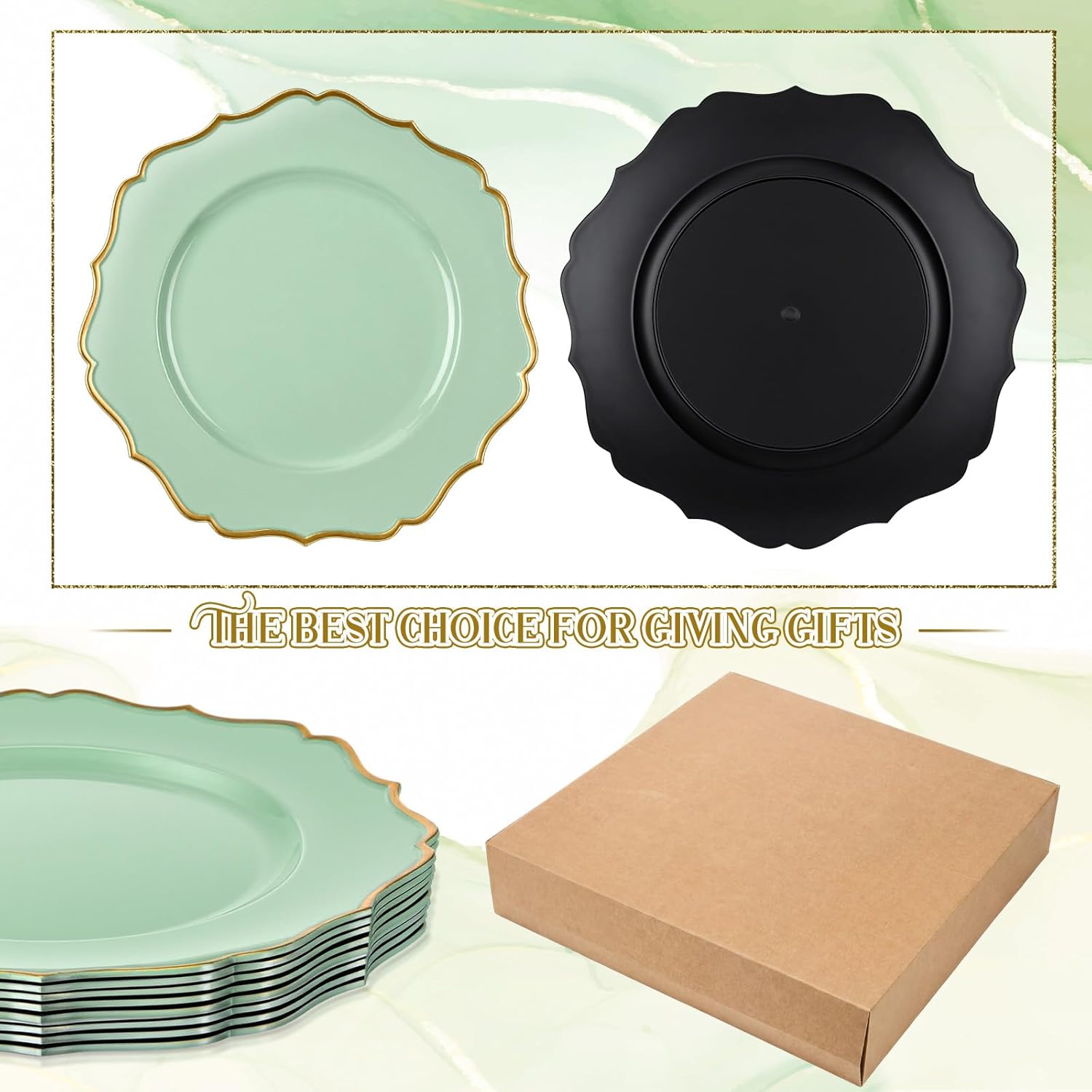 Features: Transform your dining experience with these sage green charger plates, crafted from durable plastic to blend elegance with practicality. Customers love the sturdy feel and exquisite appearance, making them perfect for both casual gatherings and formal occasions. Add a touch of sophistication to your table setting while ensuring longevity and easy maintenance. The standout sage green color adds a contemporary edge, creating a visually appealing backdrop for your dinnerware and elevating the overall aesthetic of your meal presentation. Specifications: Material: plastic Color: sage green Size: about 13 inches Package includes: 12 x Sage green charger plates Notes: Manual measurement, please allow slight errors on size. The color may exist a slight difference due to different screen displays