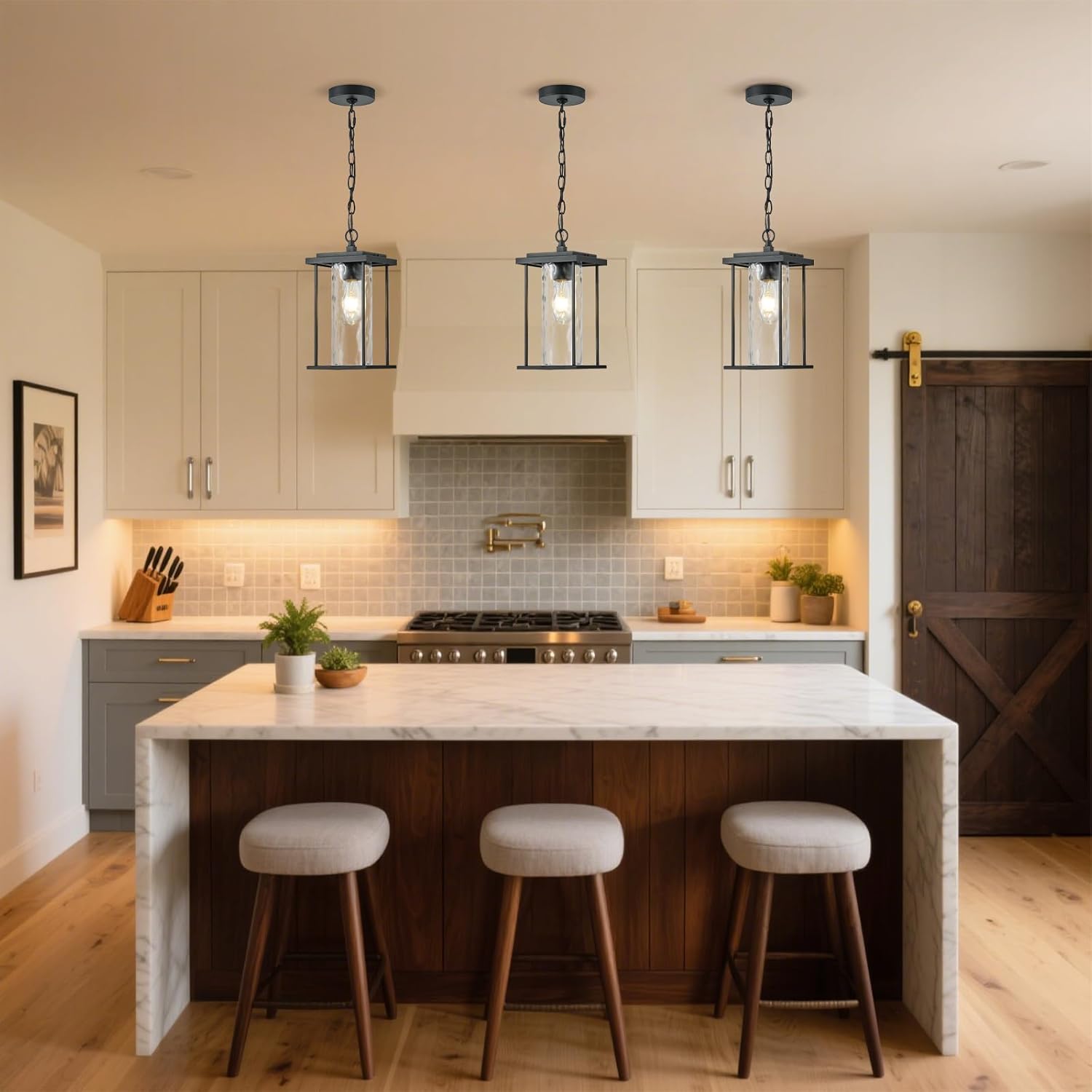 "GOALPLUS modern outdoor pendant light fixture for porch, patio, hallway, garage and house entryway Dimension: Lamp Body: 6.7"" x 6.7"" x 13.8"" (L x W x H); Pendant Chain Length: 36"" Maximum. Required Bulb: One E26 base bulbs (Max. 60 W) per light fixture; Bulb NOT included; Compatible with incandescent, CFL or LED bulb. Installation: Hard wired, includes all mounting hardware and instruction sheet for easy installation. Package Include: 1 x Outdoor hanging light fixture with pendant chain; 1 x Installation accessories bag; 1 x User manual; Please note: For safety reasons, if you do not have electrical wiring experience, having your fixture installed by a qualified licensed electrician is required."