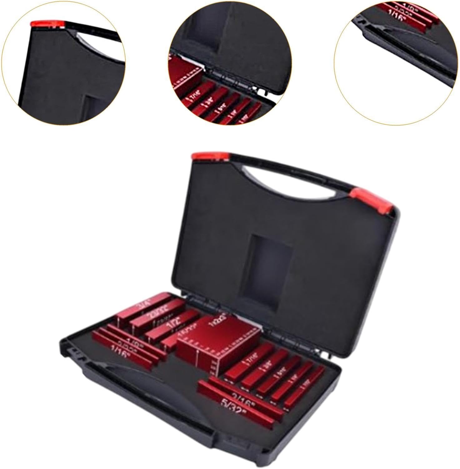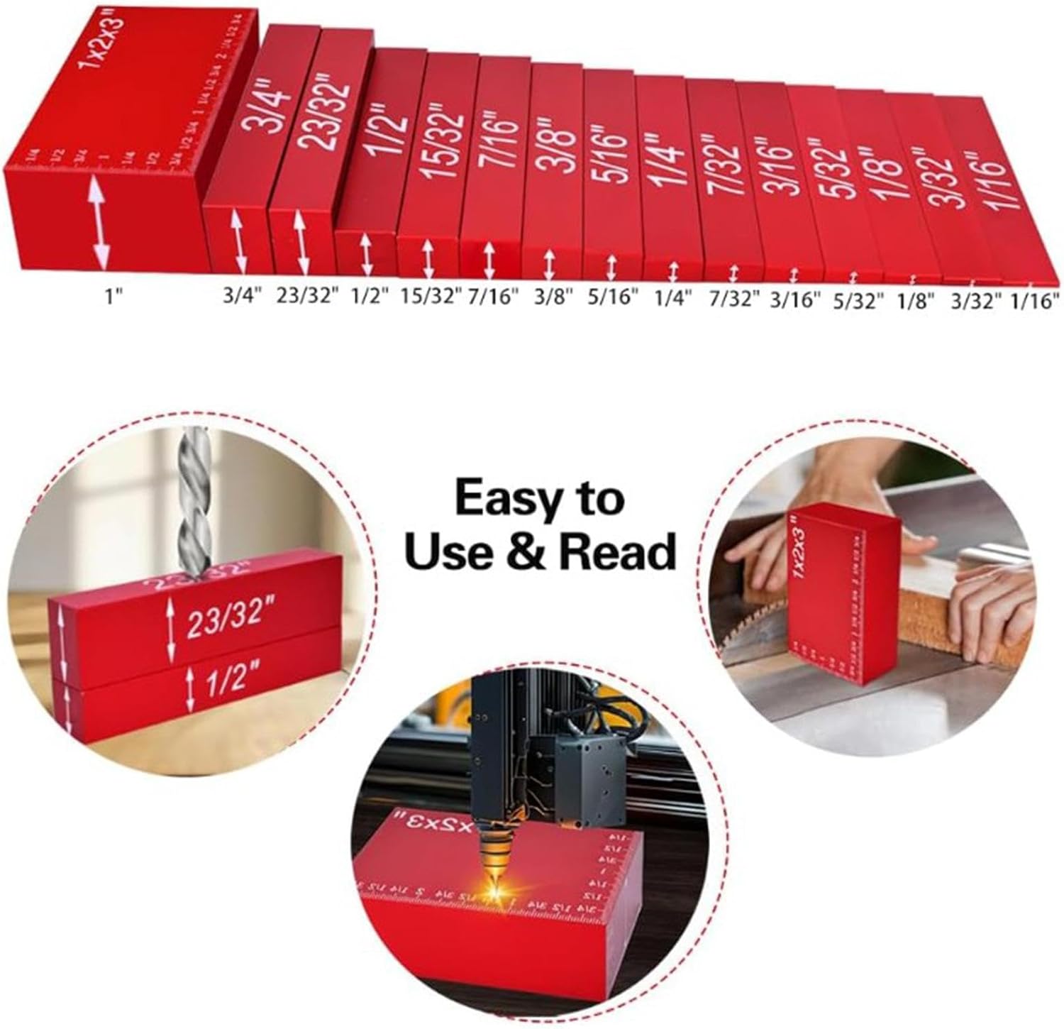 Description:- 【Wide application】: This set of 15 setup blocks gauge sets makes it easy for you to set the height of fences and cutting machines as needed, which is faster and more accurate than using a combination ruler- 【Material】: These setup blocks height gauge sets are made of premium aluminum alloy and are designed to withstand the rigors of the workshop- 【Product size】: Woodworking setup bars include 15 different sizes to meet your various needs: 1/2", 1/16", 23/32", 3/32", 1/8", 5/32", 3/4", 3/16", 7/32", 1/4", 7/16", 5/16", 3/8", 15/32", 1x2x3"- 【Precision tools】: These aluminum setup blocks are a must have tool for any woodworking, construction, or home DIY who seeks accuracy in their projects. They provide an effective way to ensure accurate measurements every time you perform a craft- 【Features】: The height gauge of each block has easy to read engraved markings, allowing for quick and accurate reading of measurements. It also comes with a storage box for easy storage and carrying, making it a practical table saw accessorySpecification:- Material: Aluminum alloySize Chart:Packing size 22 cmx16 cmx4 cm/8.66 inchx6.30 inchx1.57 inchPackage Includes:15x Woodworking Setup Blocks1x BoxNote:Please allow slightly errors 1-2cm/0.39-0.79inch differences due to manual measurement.