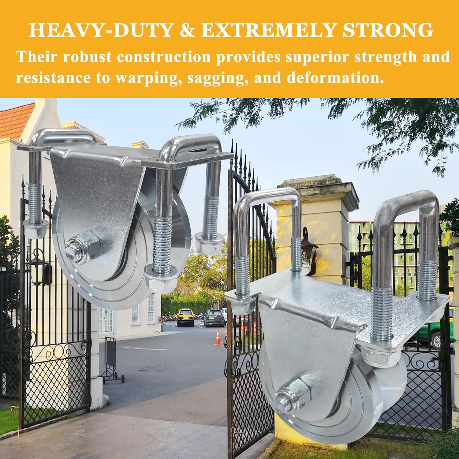 Effortless Installation, Professional Performance Upgrade your sliding gate system with our heavy-duty V-groove roller wheels, engineered for reliability and ease. Unlike traditional rollers requiring welding, these units feature a bolt-on design that reduces installation time to under 30 minutes. Perfect for DIY enthusiasts and professionals alike, the kit includes everything needed for a seamless setup—from robust brackets to weather-resistant hardware. Built to Endure Heavy Loads and Harsh Conditions Constructed from ASTM-grade cast steel, these wheels undergo rigorous heat treatment to achieve exceptional tensile strength and impact resistance. The zinc plating meets ASTM B633 standards, providing sacrificial protection against corrosion in rain, snow, or salt-laden air. Whether securing a driveway, warehouse, or farm entrance, these rollers deliver unwavering stability for years. Engineering Excellence for Smooth Operation The sealed bearing system is pre-lubricated to maintain optimal rotation while blocking contaminants like dust and moisture. Precision-ground grooves grip the track firmly, eliminating wobble and jumpiness even under maximum load. By minimizing friction and wear, these wheels reduce long-term maintenance costs and prevent gate failure. Ideal for Multiple Applications Residential: Secure driveways and perimeter gates. Commercial: High-traffic entrances for warehouses, parking lots, and industrial facilities. Agricultural: Durability for farm gates exposed to dirt, moisture, and heavy use. Technical Specifications Wheel Diameter: 4 inches Groove Angle: 90° Bearing Type: Sealed Deep Groove Material: Cast Steel Surface Finish: Zinc-Plated Load Capacity per Wheel: 3,300 lbs; Total (2-Pack): 6,600 lbs Package Contents 2 x V-Groove Wheels with External Brackets 2 x Sets of Mounting Hardware (Bolts, Nuts, Washers)