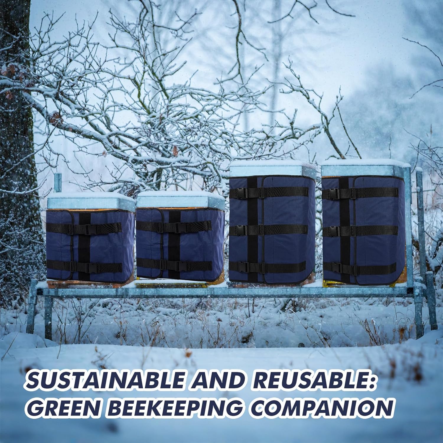 Features: Breathable Yet Insulating Design: The multi-layer structure of insulated winter beehive wrap not only locks in warmth but also allows proper airflow, preventing excess moisture buildup inside the hive. This balance helps maintain a healthy environment for bees throughout the winter. Seasonal Versatility: While ideal for cold winters, the hive cover can also provide wind and rain protection in fall and early spring, giving your bees year-round support during changing weather conditions. Specifications: Material: 600D Oford fabric with aluminum foil lining and a pearl cotton middle layer Color: navy blue Size: approx. 76.4 x 32 inches Package includes: 2 x Winter bee hive wrap Notes: Manual measurement, please allow slight errors on size. The color may exist a slight difference due to different screen displays