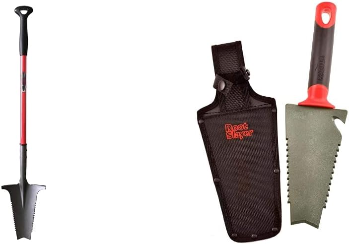 Radius Garden 22311 Root Slayer Nomad, Root Slayer Nomad, RedCompact and portable, the Root Slayer Nomad revolutionizes your gardening experience. This multi-purpose tool excels in small spaces, raised beds, and campgrounds, slicing through sod and small roots with exceptional ease. The Nomad's blade is 70% the size of the original Root Slayer, ensuring lightweight usability without sacrificing sharpness or strength. The "inverted V" blade and root-cutting ripsaw teeth eliminate the need for hatchets and pry-bars; use while camping, metal detecting, weeding, and similarly tricky jobs.Radius Garden 16011 Root Slayer Trowel, RedAt Radius Garden we are pretty finicky about trowels. After all, the company was founded on a design for an ergonomic trowel, The natural Radius grip trowel. As I was bending over My raised bed one day last spring struggling to transplant some deeply rooted herbs, I had the thought, "I really wish I had a trowel that was as easy to use as the root Slayer shovel." within a week The Design was completed. We developed a new flared handle for extra comfort, adapted the root Slayer shovel design as a trowel, & added a twine cutter notch that doubles as a bottle opener. I can tell you from experience that the trowel works like a dream, not only for gardening, but also for opening Craft IPA's. You'll never find a sturdier trowel to rip through roots & difficult soil.