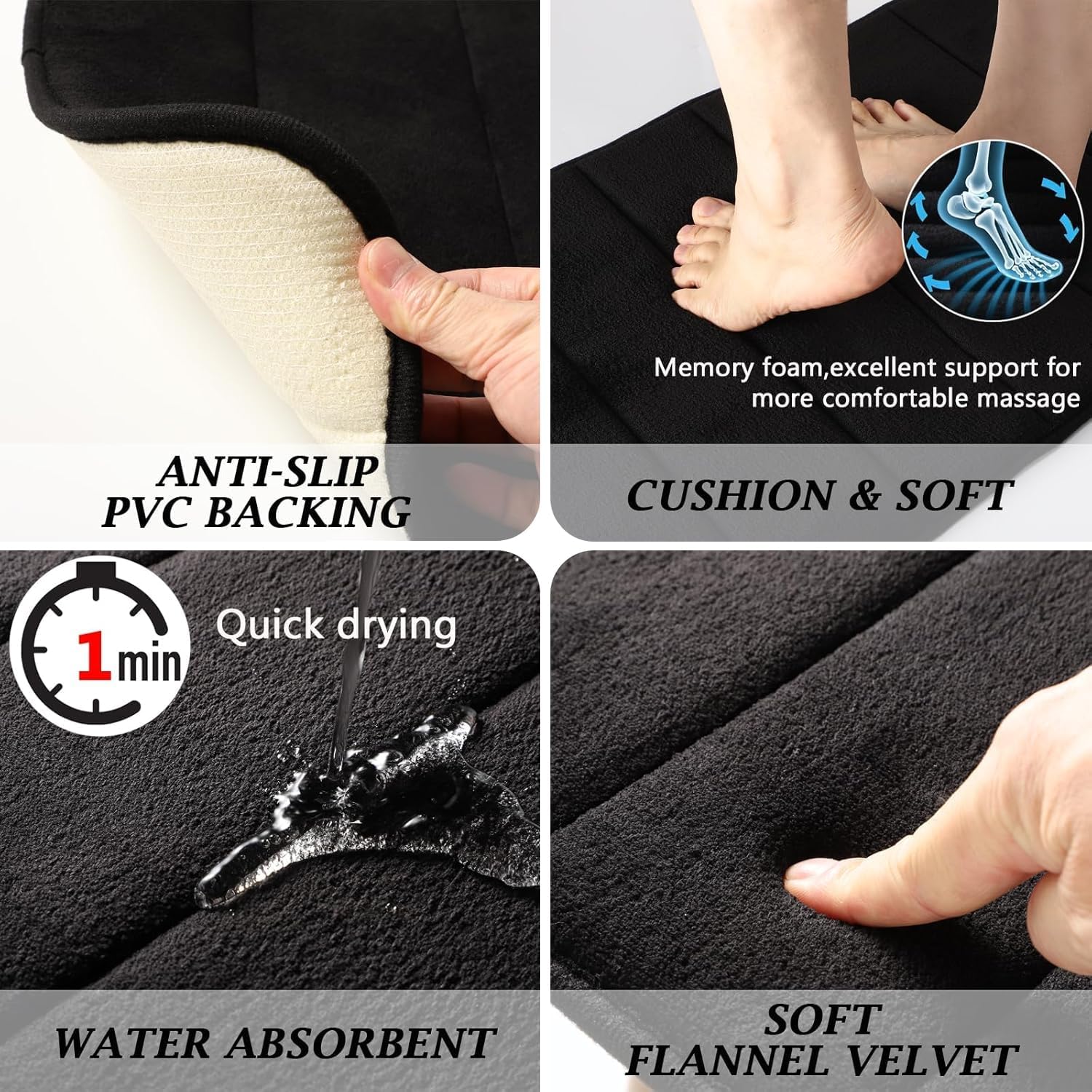 | Included Components | Toothbrush holder, tumbler, soap dispenser, soap dish, trash can, toilet brush and holder, 2pcs apothecary jars, 16*24in bath rug, 20*24in toilet mat, fabric shower curtain set with clear liner and 12 nickel shower curtain hooks, 2.1gal trash can with bamboo 360° shaking lid, double-layer soap dish, and non-slip bathroom mats. |
