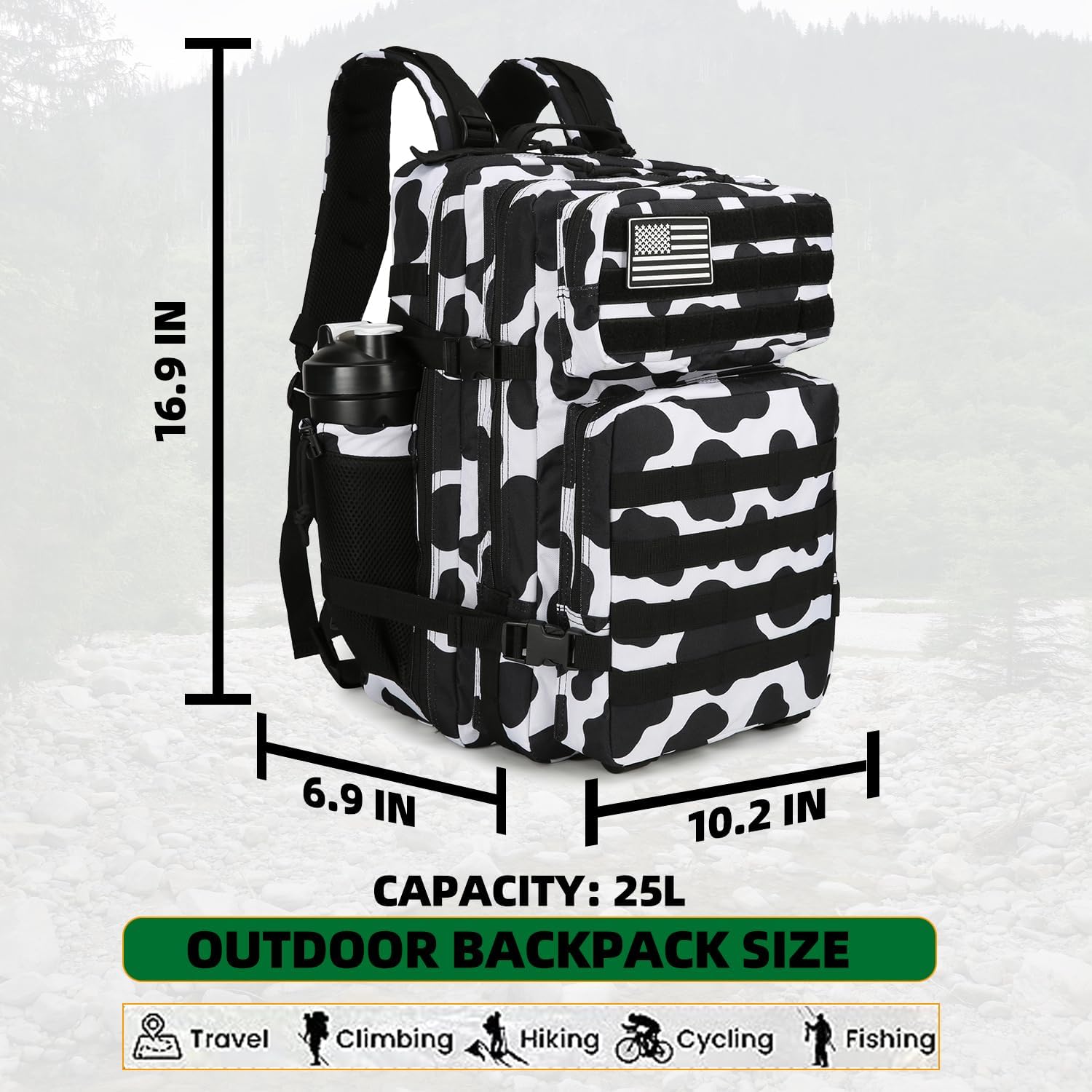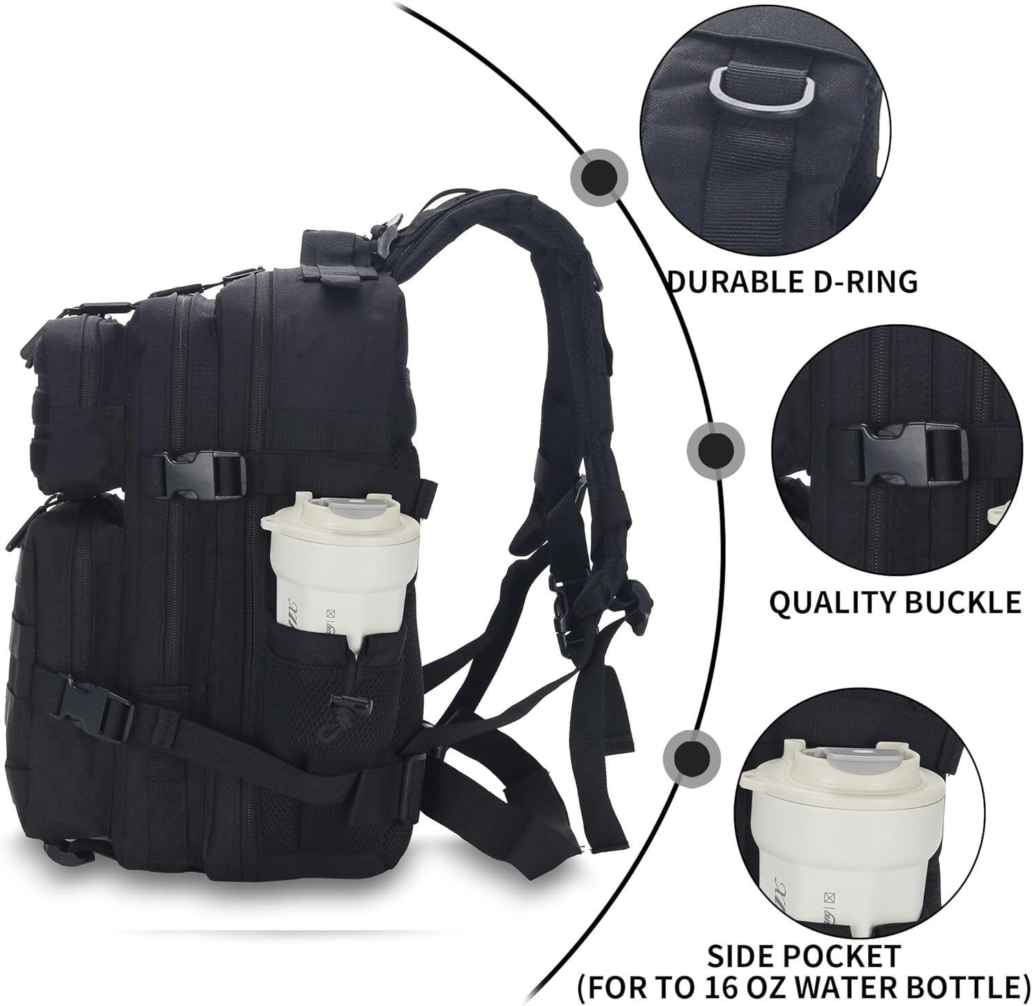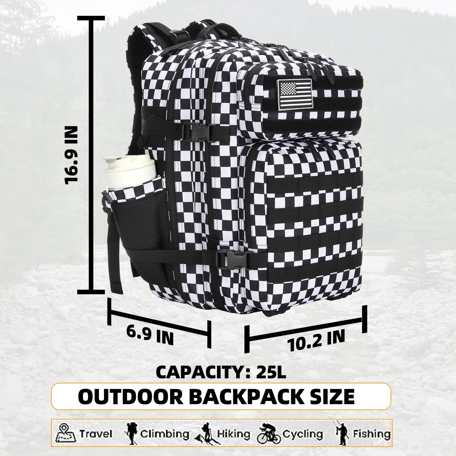 Lovelinks21 25L Tactical Backpack-The ultimate small tactical backpack for men and women.-This backpack is designed to meet the demands of modern life, offering unparalleled functionality, durability, and style.-The lovelinks21 backpack is designed with a minimalist aesthetic in mind, making it perfect for those who value both form and function. -The main compartment is roomy and versatile, allowing you to store a wide range of items, including clothing, electronics, outdoor gear, and more. -The tactical military backpack also includes 2 separate zippered front pocket, perfect for storing smaller items such as keys, phone, and wallet.-The tactical backpack with hydration compartmen is equipped with a Molle system, allowing you to customize and expand the backpack's storage capabilities.-The adjustable straps allow you to customize the fit to your preference. The chest strap helps to distribute the weight of the backpack evenly across your body, reducing strain on your shoulders.Are you looking for a high-quality, reliable, and attractively designed backpack for your exploring new lands, jeeping, car camping, going to the zoo, dog walking, or work needs? Look no further than the lovelinks21 tactical military backpack.