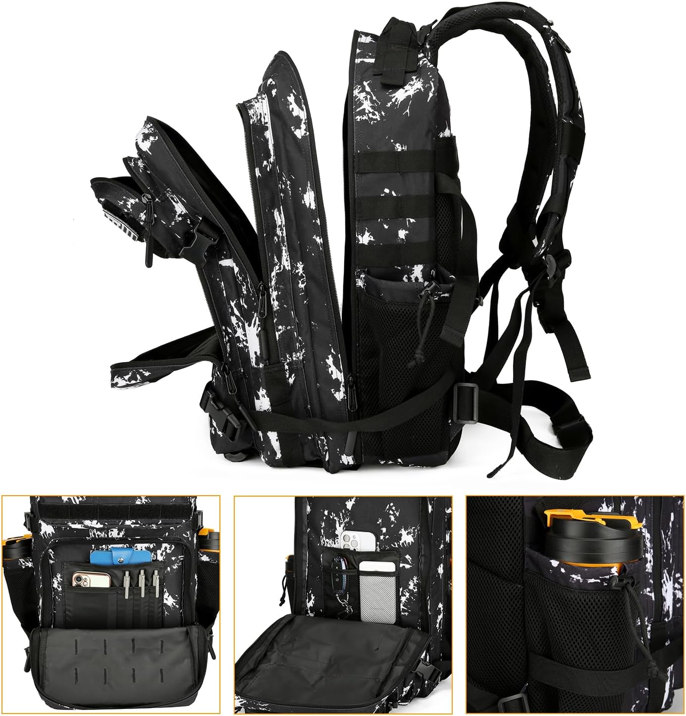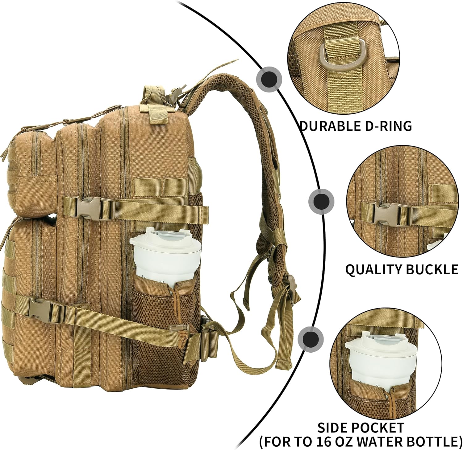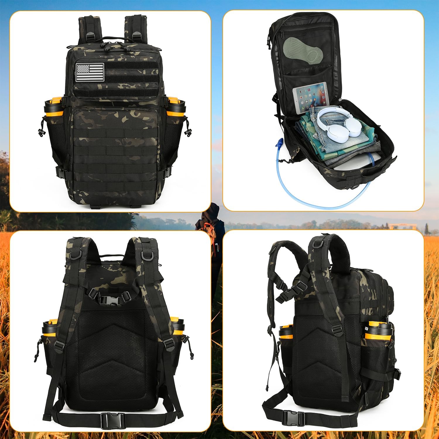 Lovelinks21 25L Tactical Backpack-The ultimate small tactical backpack for men and women.-This backpack is designed to meet the demands of modern life, offering unparalleled functionality, durability, and style.-The lovelinks21 backpack is designed with a minimalist aesthetic in mind, making it perfect for those who value both form and function. -The main compartment is roomy and versatile, allowing you to store a wide range of items, including clothing, electronics, outdoor gear, and more. -The tactical military backpack also includes 2 separate zippered front pocket, perfect for storing smaller items such as keys, phone, and wallet.-The tactical backpack with hydration compartmen is equipped with a Molle system, allowing you to customize and expand the backpack's storage capabilities.-The adjustable straps allow you to customize the fit to your preference. The chest strap helps to distribute the weight of the backpack evenly across your body, reducing strain on your shoulders.Are you looking for a high-quality, reliable, and attractively designed backpack for your exploring new lands, jeeping, car camping, going to the zoo, dog walking, or work needs? Look no further than the lovelinks21 tactical military backpack.