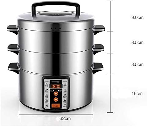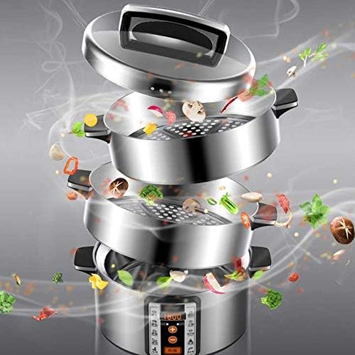 No. of Tiers: TripleModel Number: Multifunctional steamerFunction: Digital Timer ControlOpening Method: Pull-down Type: TableControlling Mode: ButtonMaterial: STAINLESS STEELCapacity (Quart): otherName: Multifunctional steamerProduct Diameter: 32cmVoltage: 110-240VPower: 300W-1800WMaterial:: Stainless steelMain cooking pot capacity:: 4LSteaming layer:: two layerNot easy to rust and easy to clean.