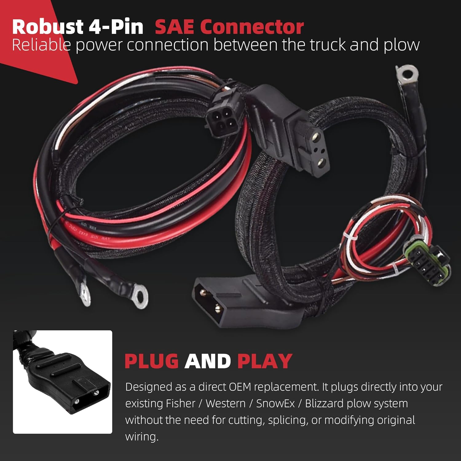 4 Pin Snow Plow Battery Cable Set Compatible with Western, SnowEx, Fisher, Blizzard, Truck & Plow Side Power Wiring Harness with Dust Cover, Replaces 42014 42015 48295, Heavy-Duty Copper Wire