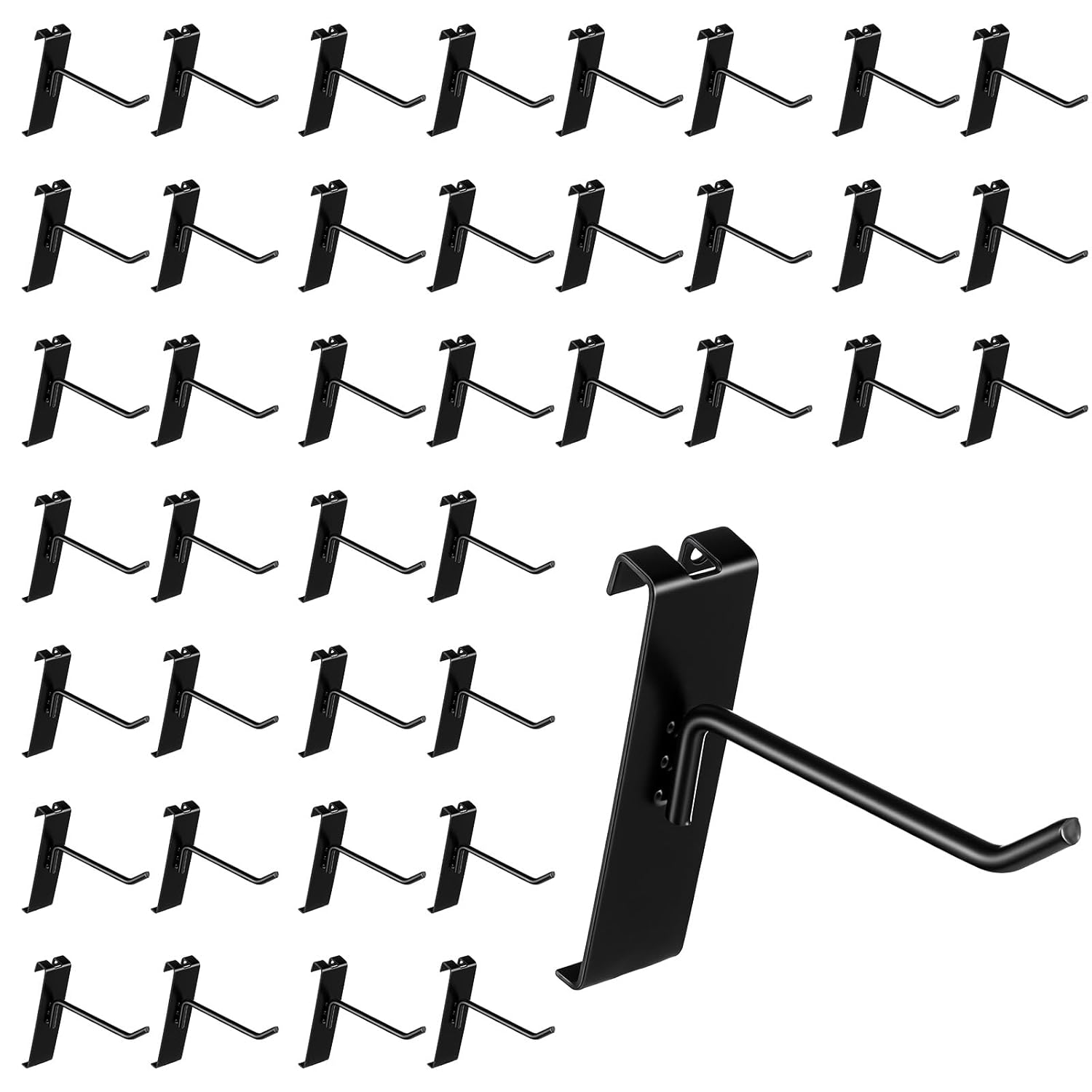 COMNICO 40 Pcs Gridwall Hooks, 4 Inch Heavy Duty Grid Wall Hook Grid Panel Hanging Hooks Black Display Grid Wall Accessory for Home Office Retail Store GarageFeatures:Solid color for versatile useEasy to installSturdy and durableDescription:Category: HookColor: BlackMaterial: IronFunction: Grid panel hookDimensions: 4.25 × 3.58 inches/10.8 × 9.1 cmPackaging: BagPackaging Contents: 40 pcs × Hook