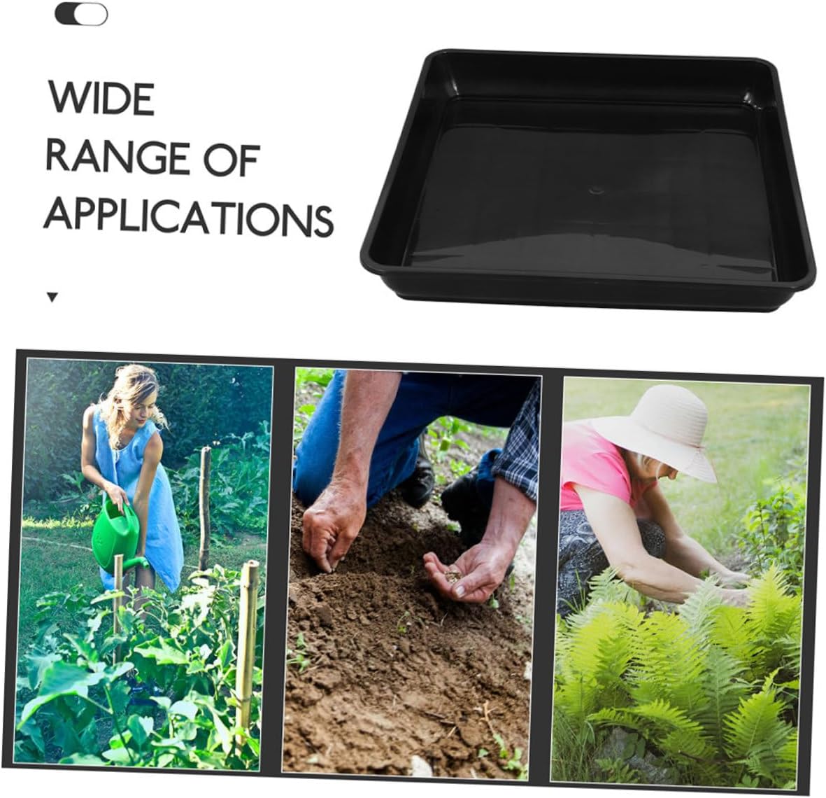 Package List 6 x Square Plant Saucer Features -Fine construction: built with a thickened material, this planter tray provides exceptional durability and stability, ensuring your pots remain upright and secure water tray for plants -Pot protection: the tray's base pad minimizes friction and prevents scratches, preserving the integrity of your pots and supporting healthy plant growth outdoor plastic drip tray -Material:PP planter water tray -Multi-environment adaptability: whether placed on a balcony, in a garden, or indoors, this tray seamlessly into various planting setups for maximum convenience black flower pot holder -Color:Black black indoor plant tray -Size:35.00X35.00X4.80cm/13.76X13.76X1.89in pot drainage tray -Water overflow prevention: designed to catch excess water, this tray helps maintain a clean environment, ideal for both indoor and outdoor use indoor flower pot holder -Decorative appeal: its clean lines and versatile color options make it a suitable addition to any home or garden, enhancing the aesthetic of your plant arrangements square indoor plant holderGoods Descriptionoutdoor plant saucer Suitable for various pot sizes, it catches excess water, preventing damage to your surfaces.black indoor plant tray The tray's solid construction and multiple color options make it a functional and attractive addition to your gardening tools, suitable for balconies and patios.water catcher tray Keep your plants and your floors protected with this practical square drip tray