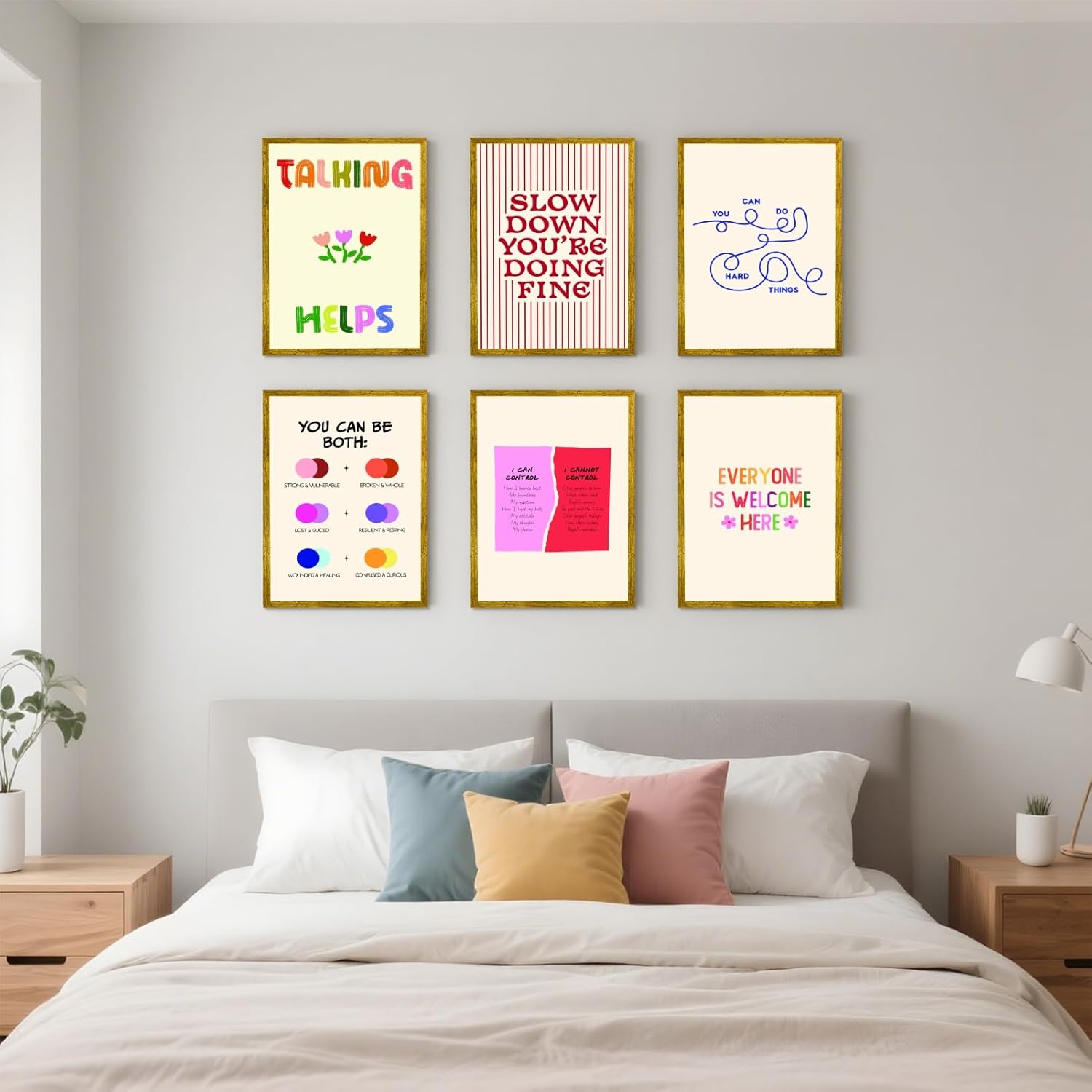 Specifications:- Printing: Canvas- Style: Motivational- Color:Colorful- Package Includes: Mental Health Wall Art *6- Dimensions: 8x12inch、12x18inch- Various styles, pay attention to the size selection, we have framed and unframed options! ! !**Product Description:**Enhance your space with our beautifully designed 6pcs Mental Health Canvas Wall Art, featuring inspirational quotes and positive affirmations. Perfect for therapy offices, classrooms, or any environment that promotes mental well-being, these posters are a daily reminder of resilience and positivity.**Easy Installation:** Unframed canvas posters are packaged in rollers. After arrival, take out the posters and flatten them with heavy objects before hanging. Framed posters come with nails for quick and easy installation. Simply find your favorite spot and let your new positive affirmation wall decor shine!- **Thoughtful Gifting:** Ideal for therapists, educators, or anyone looking to promote a positive environment, this wall art set makes a meaningful gift.Transform your environment with our motivational quote posters and let every visitor know that they are valued and capable.