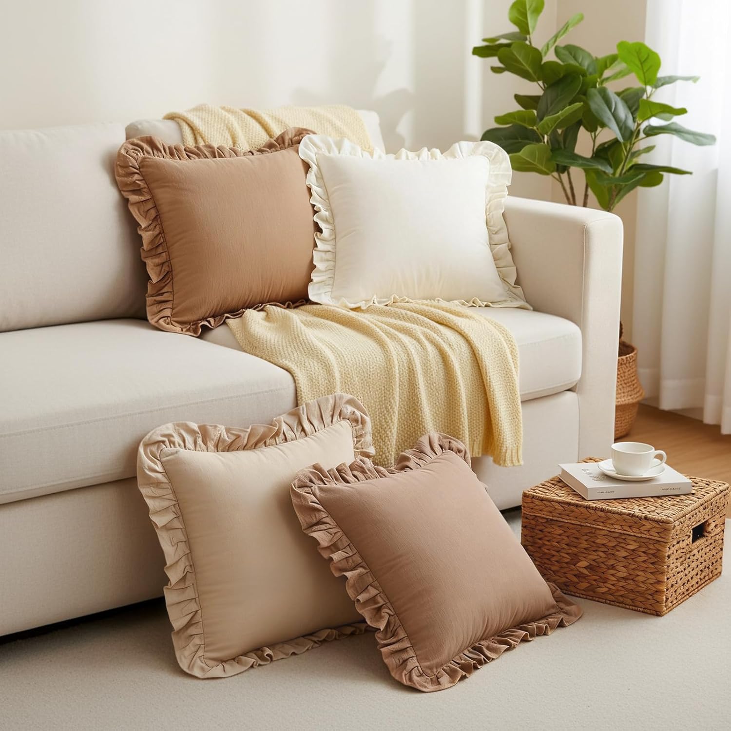 Features: With their gentle and plush feel, these pillows are a tasteful addition for your home and a daily favorite for comfort. Designed for longevity, these pillows maintain their shape and structure, ensuring lasting beauty and comfort in any setting. Specifications: Material: cotton fabric Color: multiple colors Size: 18 x 18 inches Package includes: 4 x Pillow covers 4 x Pillow inserts Notes: Manual measurement, please allow slight errors on size. The color may exist a slight difference due to different screen displays