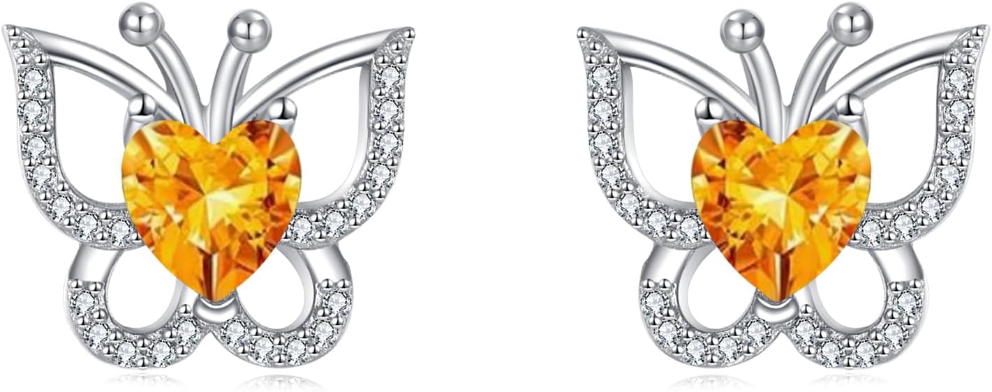 925 Sterling Silver Butterfly Stud Earrings Hypoallergenic Heart Birthstone Studs with CZ Cute Animal Jewelry Gifts for Women Her Christmas BirthdayThe butterfly's vibrant colors and graceful form symbolize a love of life and the pursuit of beauty. They also symbolize growth and transformation, making them a perfect gift for those at a turning point in their lives. Wearing this pair of 925 silver butterfly earrings conveys hope, vitality, and loveliness.Details: Highly polished finish,nickel-free,lead-free,cadmium-free and hypoallergenic for sensitive skin.Suitable for many occasions:Valentine's Day GiftSister GiftGrandma GiftMother Gift Wife GiftBest Friend GiftAnimal Lovers GiftChristmas GiftsThanksgiving Day GiftsGraduation GiftBirthday GiftAnniversary Gifts925 silver butterfly stud earrings:Material:925 sterling silverColor: white Comes with a beautiful gift box.