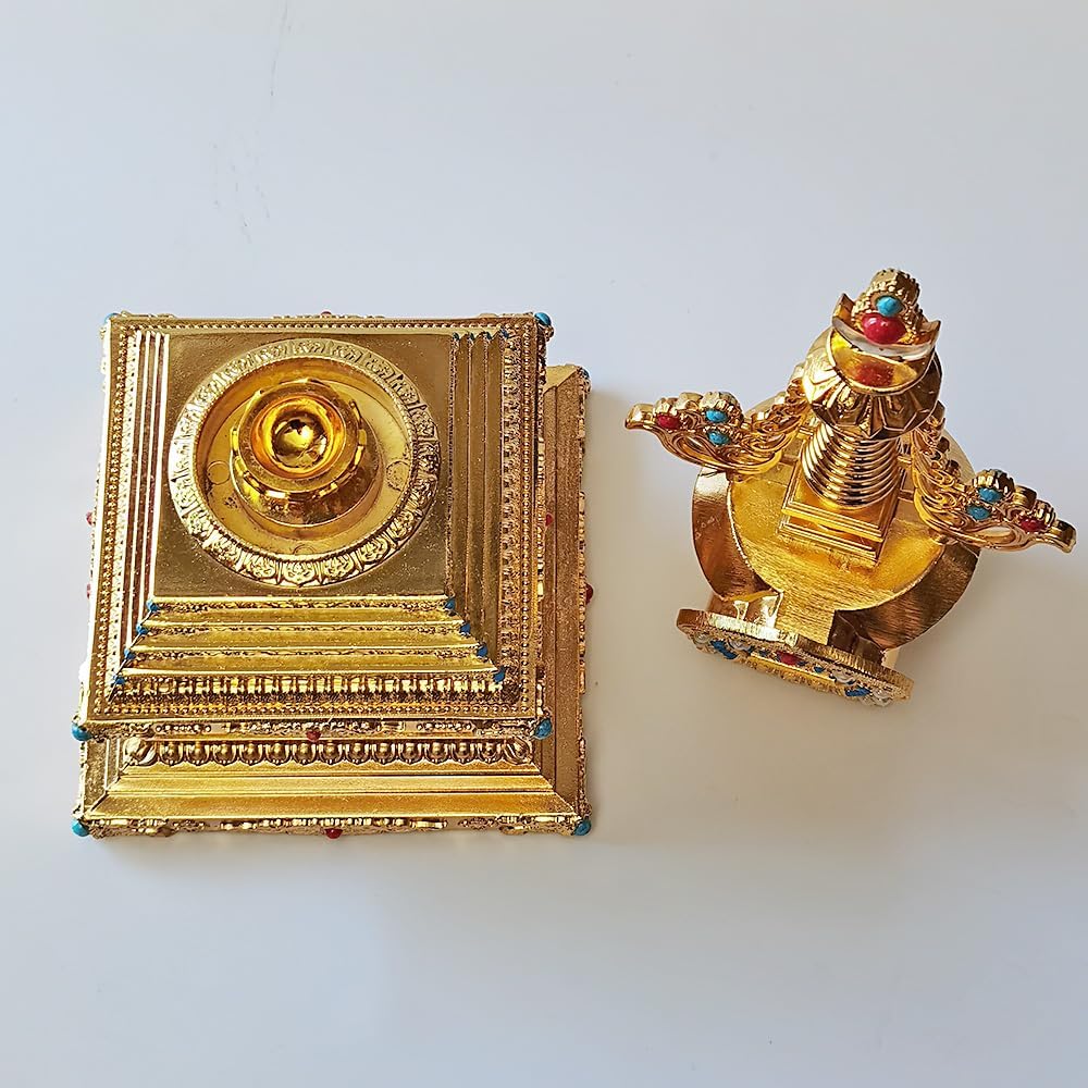 This beautifully crafted Tibetan stupa is a perfect combination of tradition, spirituality, and elegant design. Made from high-quality aluminum alloy, it is both durable and visually striking. The stupa stands 24cm (9.4 inches) tall and weighs 690g, making it an ideal decorative piece for home altars, meditation spaces, or desks. Its intricate detailing is enhanced by colorful gemstone inlays, and its golden finish adds a touch of luxury to any setting.