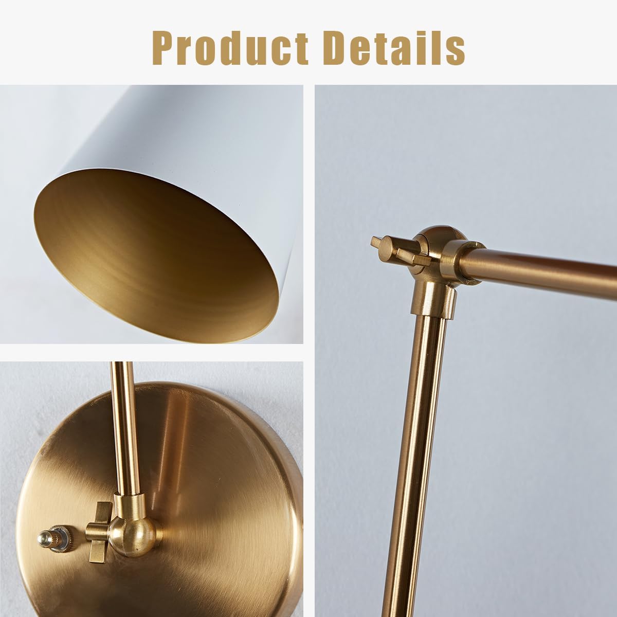 Introducing our Mid-Century Modern Metal Articulating Sconce, a sleek and stylish lighting solution for your living room or bedroom. This wall light is inspired by the iconic Mid-Century design aesthetic, featuring a tapered articulating shade and arm that allow you to adjust and direct the light to suit your needs.✎DETAILSCrafted from brass with a brushed brass shade interior and perforated diffuser, this sconce exudes a timeless elegance. The rotary switch on the backplate adds a touch of convenience, while the hardwired installation ensures a professional finish.Designed for indoor use, this sconce is perfect for adding a touch of Mid-Century modern flair to your space. Pair it with other pieces from our Lighting Collection to complete the look.✎DIMENSIONSFixture Width with Shade: 5"Projection without Shade: 16" long armProjection with Shade: 15 to 25"Shade Dimensions: 9.75" highCanopy/Base Diameter: 5"Fixture Weight: 5 lbs.Socket Type: E12Number of Sockets: 1Dimmable: Yes with Triac Wall DimmerVoltage: 120VPower Source: HardwiredSwitch Type: Rotary switch backplateRecommended Bulb: LED A15 (Bulb not included)Articulating: YesMax. Wattage Per Socket: 40W✎SERVICEOur lighting fixtures contain delicate and fragile components, such as glass globes, glass panels, crystal, alabaster, shell, and ceramic. If any parts are damaged during shipping, please contact us through Amazon's message, and we will be dedicated to providing you with the best service within 24 hours.Elevate your space with the timeless charm of our Mid-Century Modern Metal Articulating Sconce.