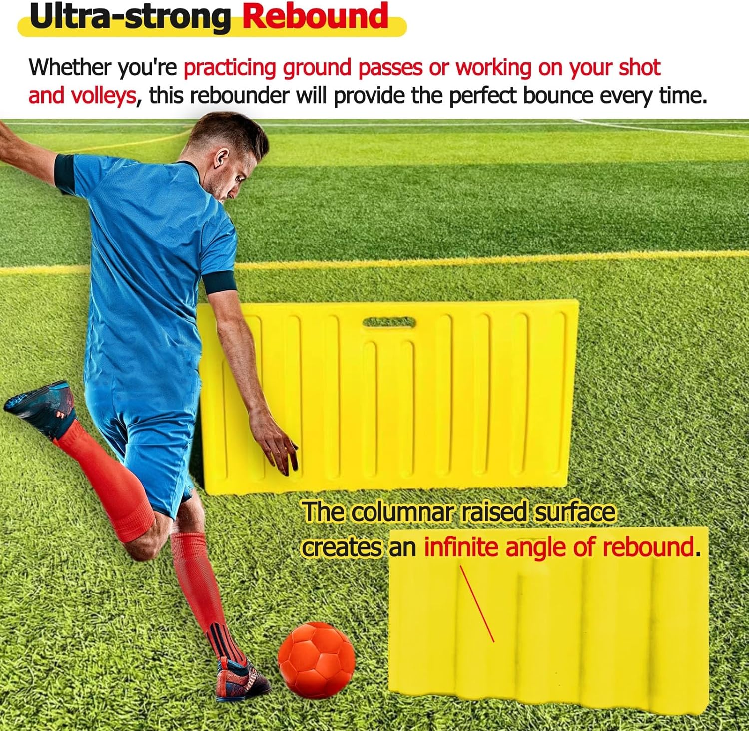 What does it take to become a better soccer player? Passing, shooting, and receiving are foundational skills in soccer. As with any sport, daily practice is needed to help you masters such skills and level up your technique. Sure, you can casually practice with your buddies a few times a week. But if you're looking to climb the ranks, you've got to devote more time and thought into honing your precision and control. Our professional soccer rebounder is designed to take your soccer training drills to a whole new level. ● Specification: - Material: Synthetic resin - Size: - Length: 79cm/31.1inch - Width: 16cm/6.3inch - Height: 42cm/16.5inch ● Features: - It will withstand countless practice sessions. - Equipped with a convenient handle, you can set up your training sessions anywhere. - Our soccer rebounder is specially designed for those who want to improve their soccer skills. It's the best way to improve passing technique and ball control, making it perfect for club training as well as home practice. ● Package Include: - 1 × Soccer Rebound Board
