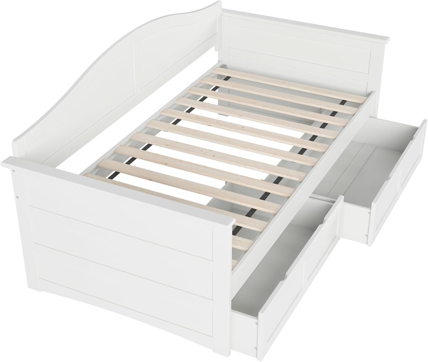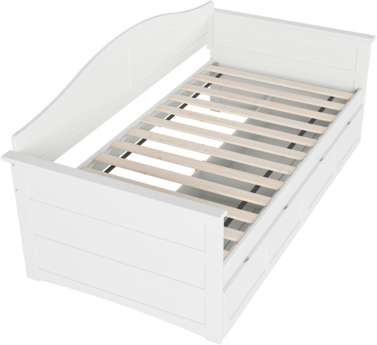 Introducing the Acadia Wooden Daybed, the perfect solution for those seeking a stylish, modern, and comfortable lounging experience. Ideal for both kids and adults, this beautifully crafted daybed boasts a clean, sleek design that complements any décor. Whether you're looking for the perfect bed for your little one, hosting guests or need a cozy spot to unwind, the Acadia Daybed is the perfect addition to any space. With the added set of 2 Bed Drawers, this daybed offers plenty of space-saving storage options. Crafted from a mix of high-quality wood, the Acadia Daybed is built to last and is sure to become a cherished addition to your home.