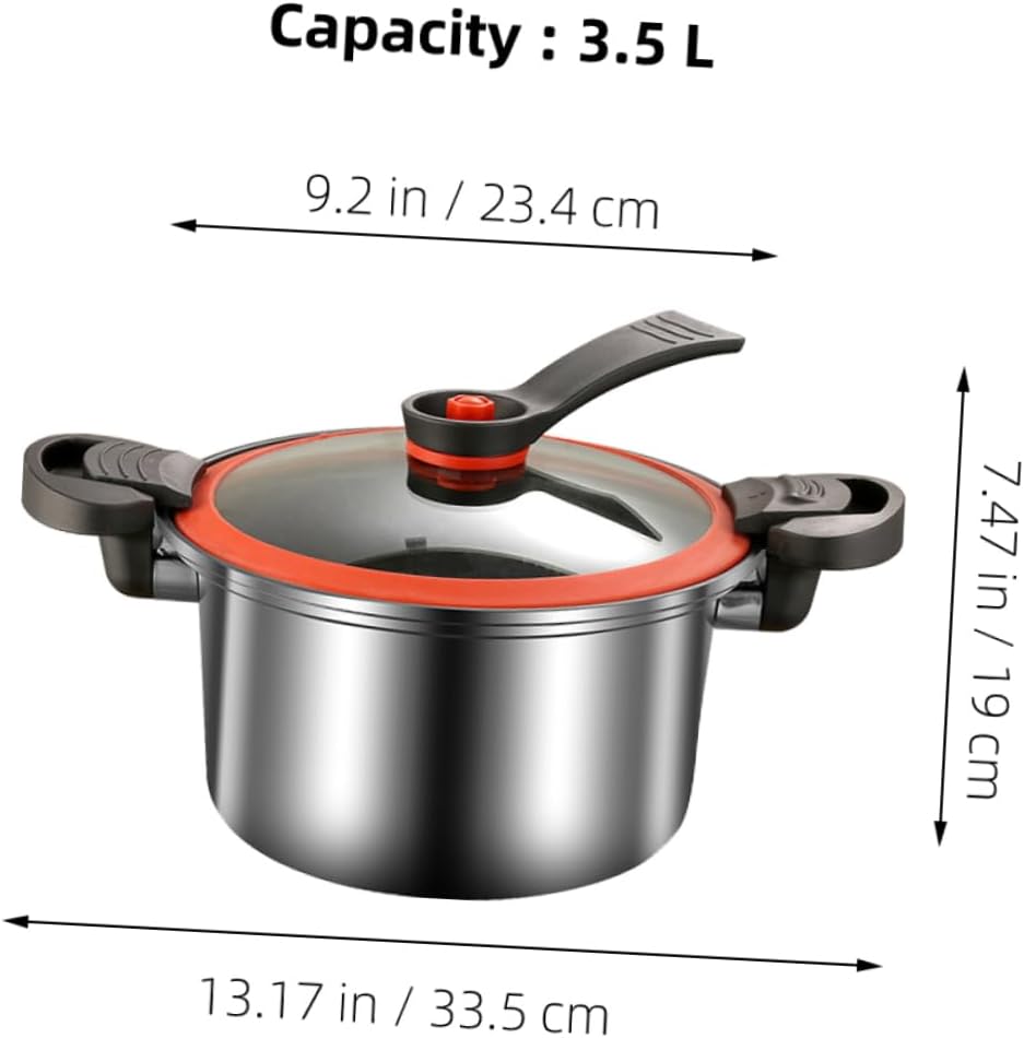 Package List 1 x Micro Pressure Cooker Characteristics -Capacity: 3.5L soup cooking pot -Color:Multi pressure cooker stainless steel -Size:33.50X23.40X19.00cm/13.17X9.20X7.47in cooking pressure cooker -Material:Stainless steel stainless steel pressure cooker - Micro pressure pot can be used to make soup, fast with good taste, better sealing, more time saving mini pressure pot. - Soup Pot is compact in size, not taking up much space, you can easily store it after use pressure pot cooking. - Simmering at low pressure reduces the damage to food nutrients, making food more nutritious Pressure Stew Pot. - A great for your family and friends who love to cook, they will love it very much large soup pot. - Fine workmanship ensuring its practicality and durability, easily win the favors of most people soup pot.Goods DescriptionPressure Stew Pot Non-stick pot for easy to clean.stainless cooking pot want to have a low pressure cooker for stewing all kinds of food? Then, our low pressure cooker is your .stainless pressure cooker You can use it to stew much food.stainless steel pressure cooker You can use it to cook a delicious soup for your family