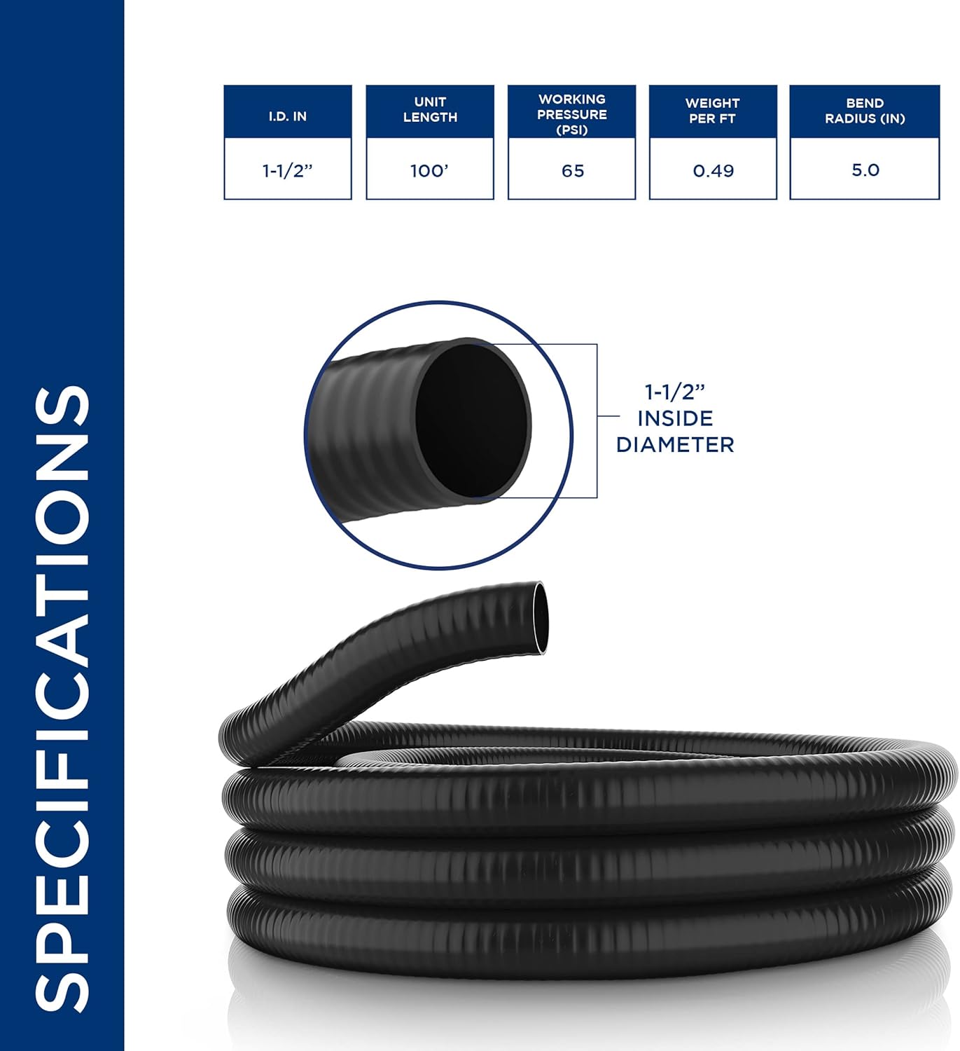 Add efficiency to your outdoor garden accessories with the 50' PVC Ultra-Flex Hose with 3/4" Inside Diameter for S-4 Fittings from Alpine Corporation. This ultra-flexible PVC hose with a 3/4" inside diameter, helps create an efficient outdoor oasis and is 50 feet long for maximum reach. The durable pond or pool hose is built to last, designed to resist crushing and hard impacts for a reliable and long-lasting hose for both above and below installations. Ideal for a variety of outdoor water accessories, this versatile water hose is perfect for ponds, spas, or pool use. Connecting is a breeze with any PVC glue and less fittings required compared with PVC pipe. This long water house measures 50' long with a 3/4" inside diameter to fit most outdoor ponds, fountains, pools, and spas, and includes a one-year manufacturer's warranty from date of purchase.
