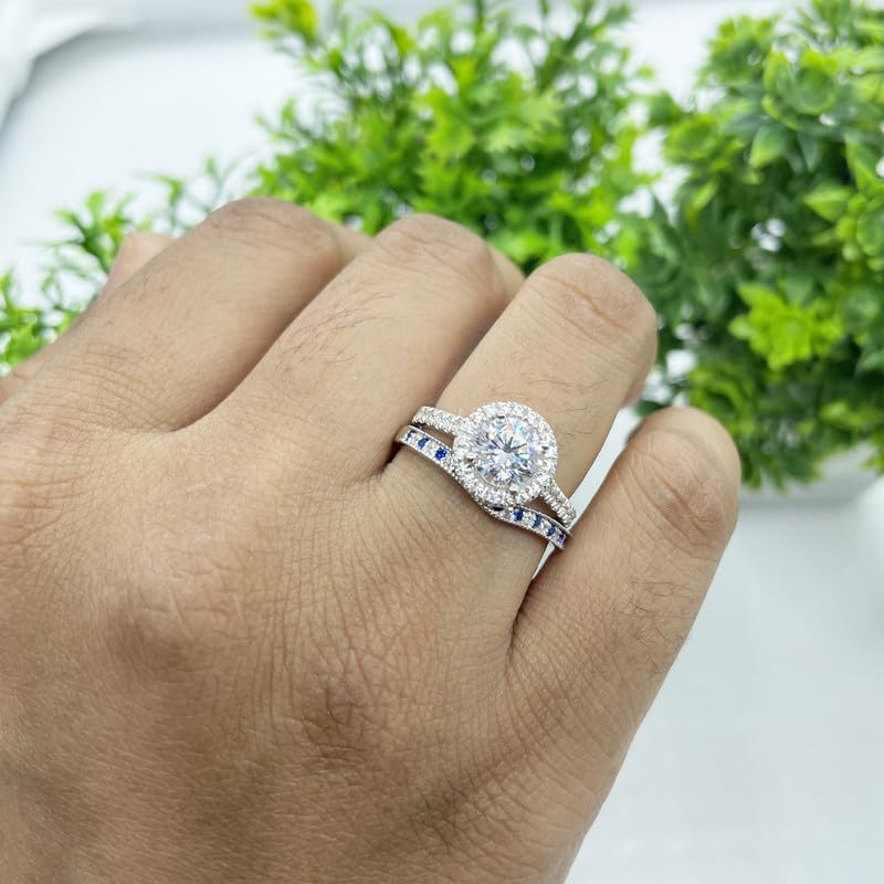 This Band Crafted in 925 Sterling Silver, available in 14K White, Yellow and Rose Gold Plating. Round Cut simulated Sapphire & White Diamond set in prong setting.