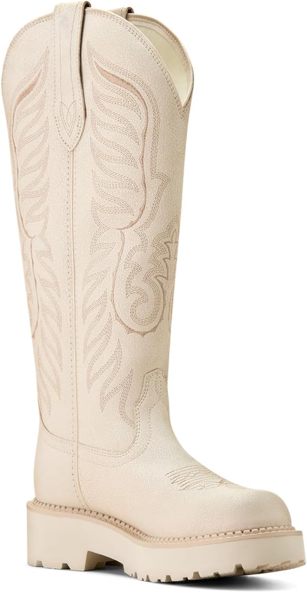 A modern take on tradition for today's cowgirl, this punchy K-toe boot adds a flash of style to any rodeo or dance-hall look. With standout stitching and an extra layer of heel-to-toe cushioning, it shines under the arena lights.