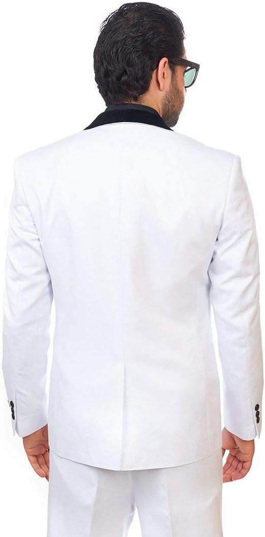 AZAR MAN SLIM FIT 1 BUTTON VELVET SHAWL LAPEL TUXEDO / FASHION SUIT Make a great first impression with these high quality 100% Superfine cotton blend AZAR Suit. Suits that slim down your silhouette and look great at work and after hours, These beautifully crafted suits feature incredibly fine details such as velvet Shawl lapels, Single center vent, A fully lined jacket and slimming flat front trouser pants that give off a lean look. This slim fit suit by AZAR is crafted with a hint of stretch. Luxurious details add a designer accent. Brand new with original tags of $249.00. 1. Choose Or Measure Height: Stand against a wall (shoeless). Place a flat ruler across top of head to wall. measure from that point down to the floor.The following guide will show you the appropriate length for your jacket. 5'4" to 5'7" = Short 5'7 _" to 5'11" = Regular 5'11 _" to 6'2 _" = Long 2. Choose Or Measure Chest: Bring tape measure around the widest part of your chest, under your arms, completely around your torso. The average man will have a 6 inch difference between chest size and waist size. For Example: 44 chest will have 38 waist 3. Choose Or measure Waist: Waist measurement should be no different than your normal waist size when you purchase a pair of trousers. However, if you would like to measure, measure around the smallest part of the natural waist. The average man will have a 6 inch difference between waist size and chest size. For Example: 32 waist will have 38 chest.