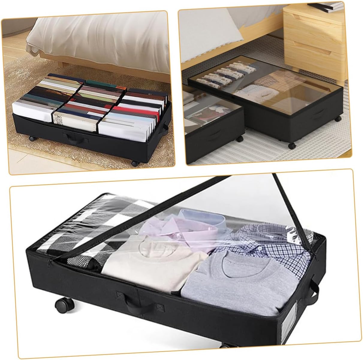Package Include 1 x Under Bed Storage Bag Characteristics -Size:80.00X42.00X16.00cm/31.44X16.51X6.29in -Product Info:Under-bed storage truck -Material:ABS, oxford cloth, iron -Easy mobility: move and retrieve items effortlessly with the sliding wheels under bed clothes organizers. -Color:Black - The zippers on the storage case can open and close easily with fewer efforts, and the transparent window design allows you to see the items in it easily storage container under bed. - The handles on the storage bag make it easy for you to move the under bed storage bag underbed organizer. - The clothes storage bin with wheel is perfect for closet, shelf, under bed, to make full use of these places for storage bedroom under-bed storage boxes. - With a large capacity, the under bed storage bag can be used to store clothes, blankets, bedding, , etc large capacity clothes storage bag.Goods Informationunderbed clothes organizers A great storage bag for travel, or home storage using.under-bed storage Reasonable design and good craftsmanship make it provide you with a .underbed storage bag This under bed storage bag is made of ABS, oxford cloth, iron material for and use
