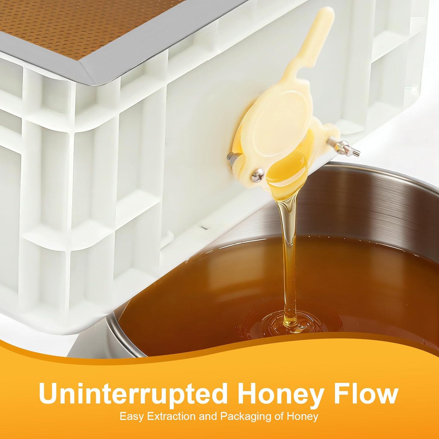 DetailsSmooth Edges: The rounded and smooth edges not only add to the aesthetics of the product but also improve the safety of use.Practical Tray: Paired with a multi-grid rack, it can be used to hold honey frames, and you can flip it over to serve as the lid for the honey container.ApplicationIt is suitable for various frame sizes and types. It can be used to collect and store honey in scenes such as farms and bee breeding bases. SpecificationsColor: Silver, WhiteMaterial: Stainless Steel, Plastic Shape: RectangleStyle: ModernHoney Container Size: 59*39*17cm/23.23*15.35*6.69inDrip Tray Size: 60*40*10cm/23.62*15.75*3.94inTray Size: 60.5*40.5*2cm/23.82*15.94*0.79inPackaging Size: 64*45*22cm/25.2*17.72*8.66inGross Weight: 9.5kg/20.94lbsNet Weight: 9.03kg/19.91lbsPackage Included 1* Honey Container1* Drip Tray1* TrayOther Accessories for Use Notes1. Please check the size carefully before ordering.2. Please note that this product does not include honey.3. Please allow the slight color difference caused by the shooting light and 1-3cm error due to manual measurement, and make sure you do not mind before you order.