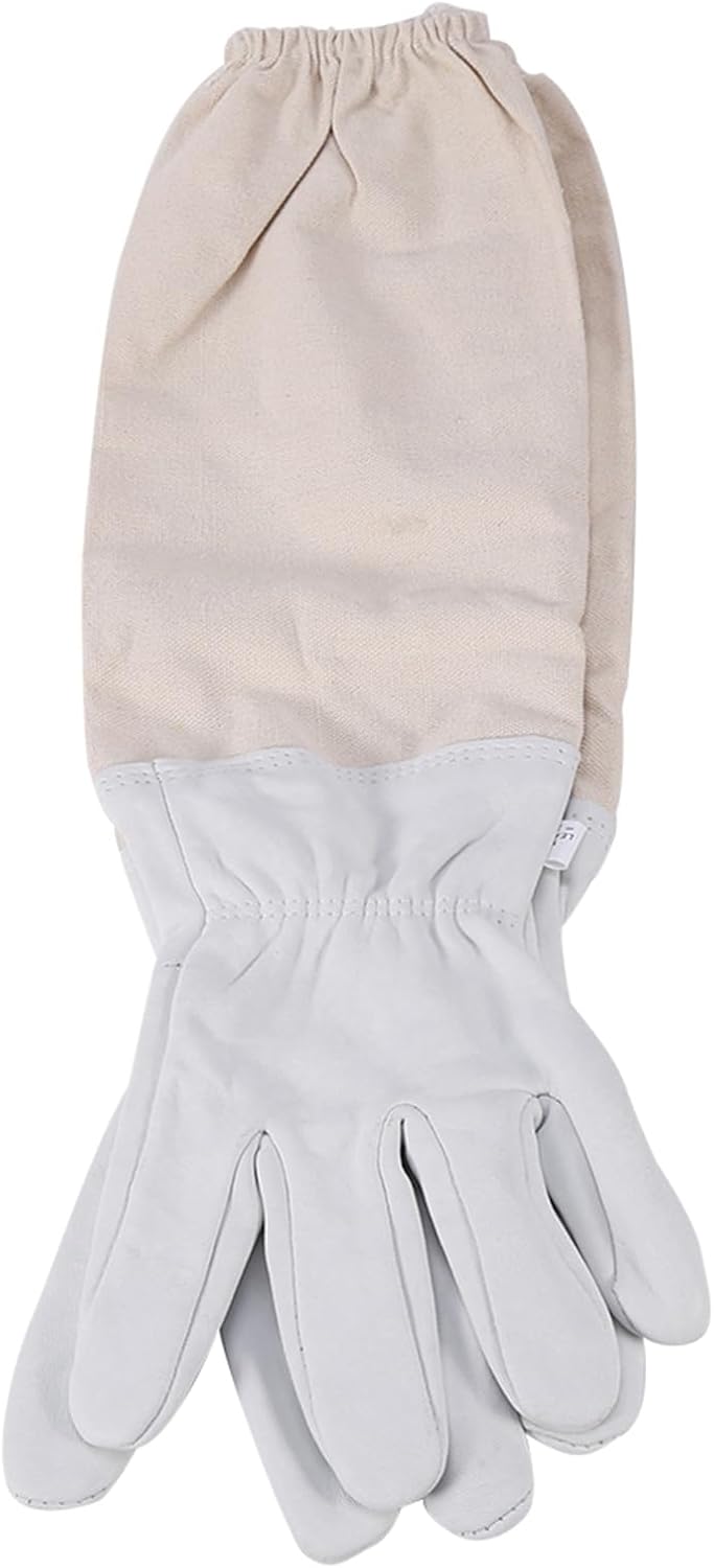 Beekeeping Veil Suit Smock:Brand new and .Brand new well made white jacket and veil, lightweight and cool for hot weather.Strong, tough cotton with elasticated cuffs and waist band, keep the bees out.Popular round hat design, strong rings keep the bees well away from your face, great all round visibility.Veil attached by a zipper and made from strong black net.One section pocket at the front.Specifications:Colour : WhiteMaterial: High-quality cotton.Size : fit for most adults. Suit shoulder width : Approx. 66cm/25.98"Sleeve length : Approx.56cm/22.04"Hat diameter :Approx. 37cm /approx. 14.56"Hat height:Approx. 15cm / 5.9"Veil L x W: Apporx.18 x 34cm/7.08 x 13.38"Beekeeping Gloves:Soft hand, straight thumb.Nice long arm protection.Total length: Approx. 50cm / 19.68 inch.Part of sheepskin length: Approx. 20.5cm / 8.07 inch.Palm Width: Approx. 11cm / 4.33 inch.Middle finger of gloves length: Approx. 8.5cm / 3.34 inch.Material: Sheepskin, ventilation fabric.Color: Gray and whiteBeekeeping Bee Brush:Brand new and high qualityMade with soft pig , to be gentle on your beesA very useful item to have when working bees in any type of hiveTotal Length: Approx.40cm/ 15.74inchBristles (L x W): Approx.20x6.5cm/ 7.87x2.55inchMaterial: Pig bristlesColor: As shownNote: Make sure to keep the brush clean and use it only for brushing the bees off of the honeycombs. You do not want to contaminate the honey. If you believe that the brush has become too sticky from the honey, use fresh water to clean it and carry the water with you while you are maintaining the hives. Package Include:1 x Bee Hive Frame Holder Lifter Capture Grip Tool1 x Beekeeping Jacket Veil1 x Pair Beekeeping Gloves1 x Beekeepers Bee Brush