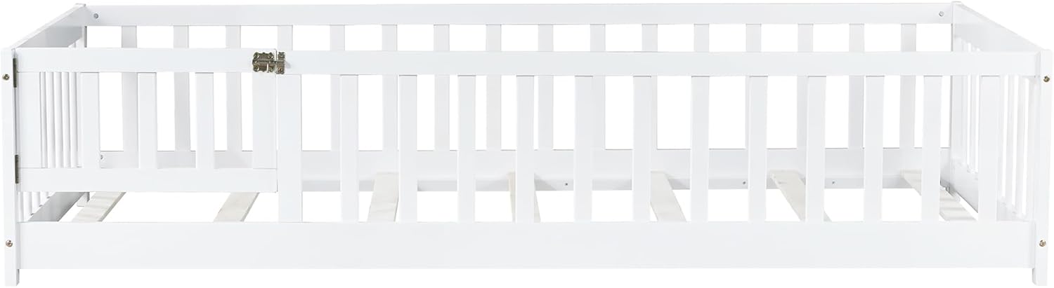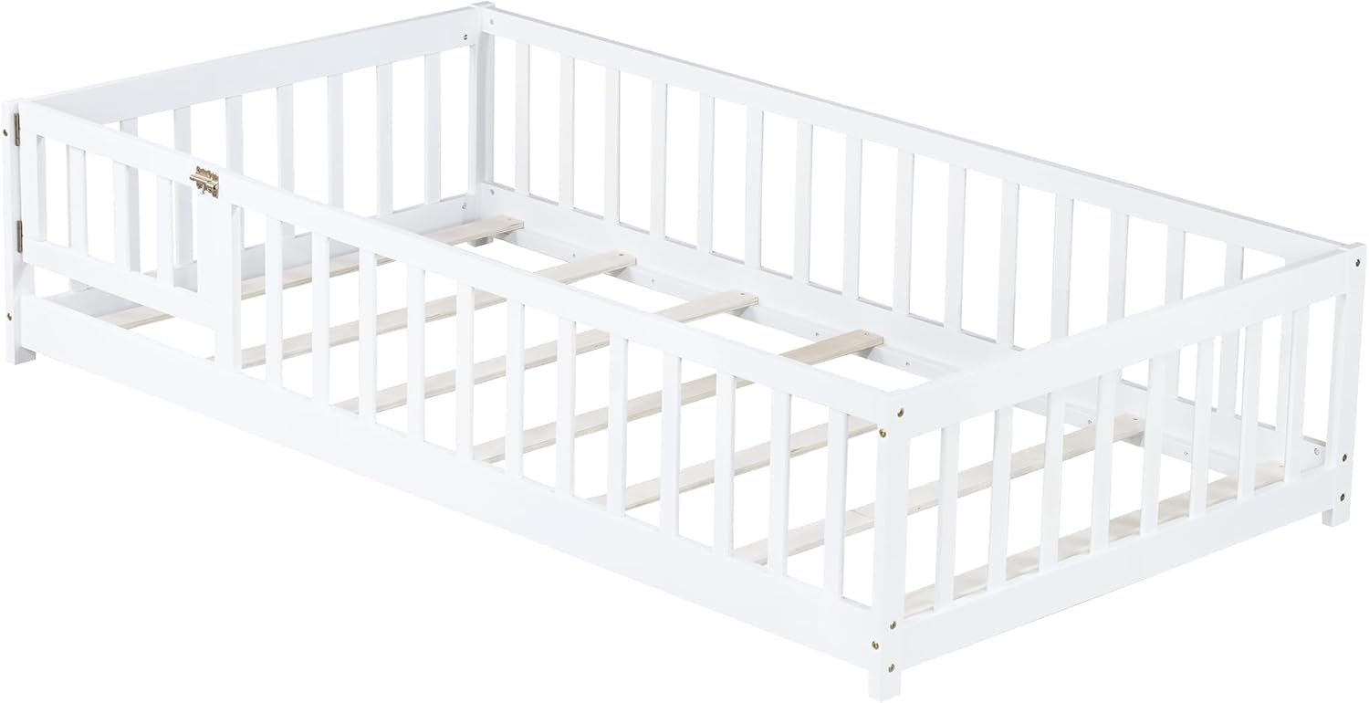 | Item Type Name | Twin Size Floor Bed Frame with Slats and Fence for Kids,Solid Wood Montessori Floor Bed with Door and Safety Guardrails for Girls Boys |