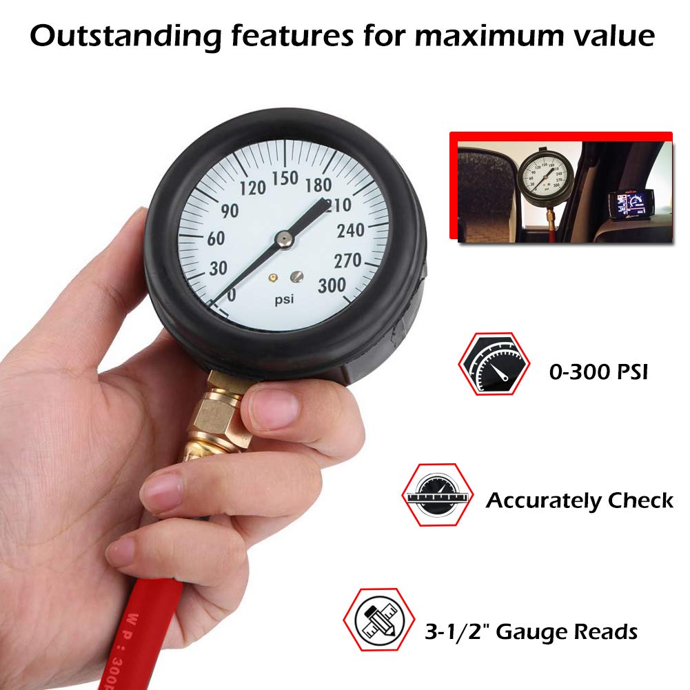 Features This tool contains a hose assembly with a female Compuchek connector at one end and a 3-1/2", 300 PSI pressure gauge at the other end.High-precision dial, accurate value.Come with a screwed joint.High Quality Made of high standard rubber with nice red finish coat , ensures an unparalleled long lifespan. Universal Cylinder Liner Puller PT-6400-C & PT-6400-C to ZTSE2536 Conversion Kit Universal Cylinder Liner Puller PT-6400-CCylinder Liner Press Installer 3164606Rear Crankshaft Seal Remover and Installer ToolPiston Ring Compressor Remover Installer PT-7040Transmission Cooler Thermostatic Bypass Upgrade