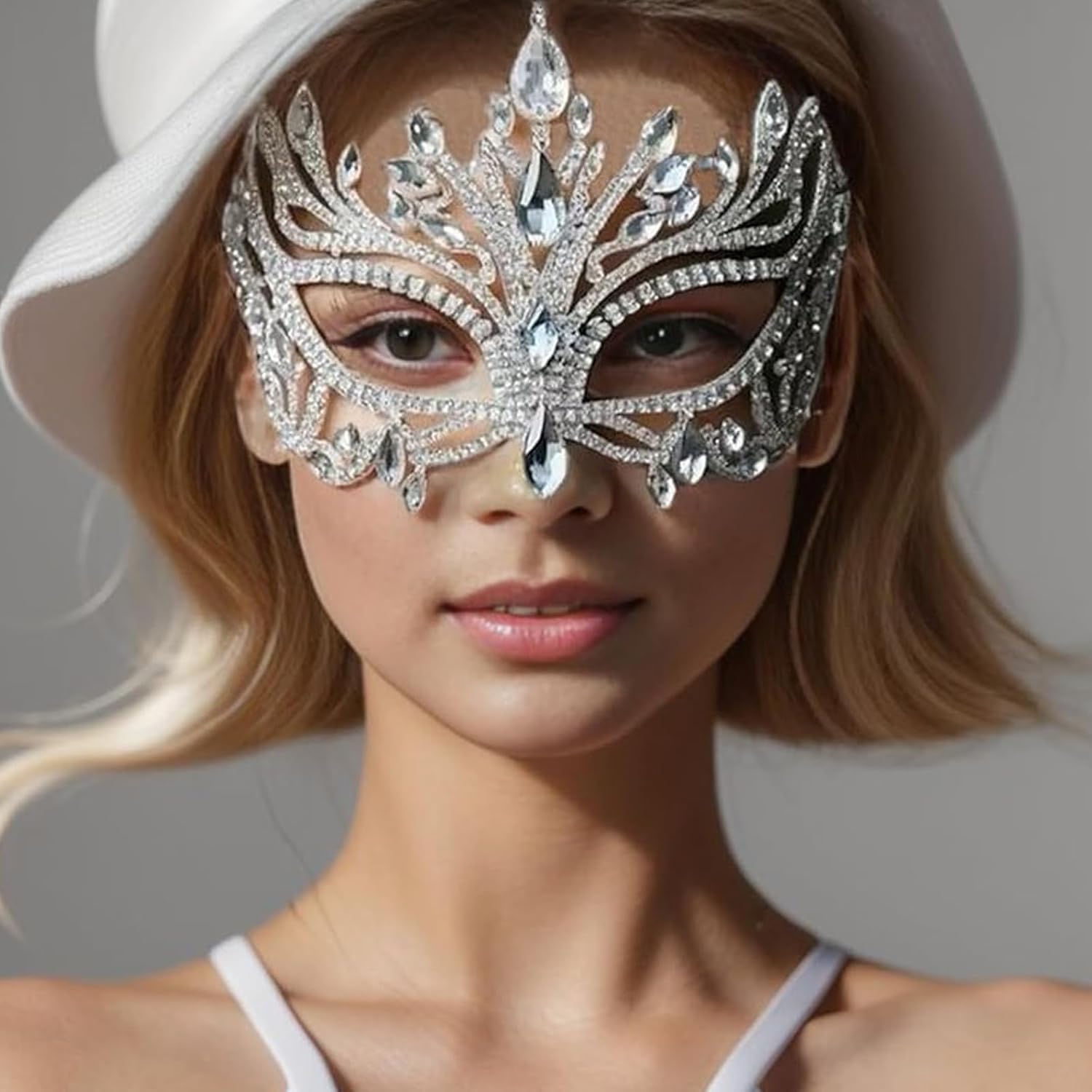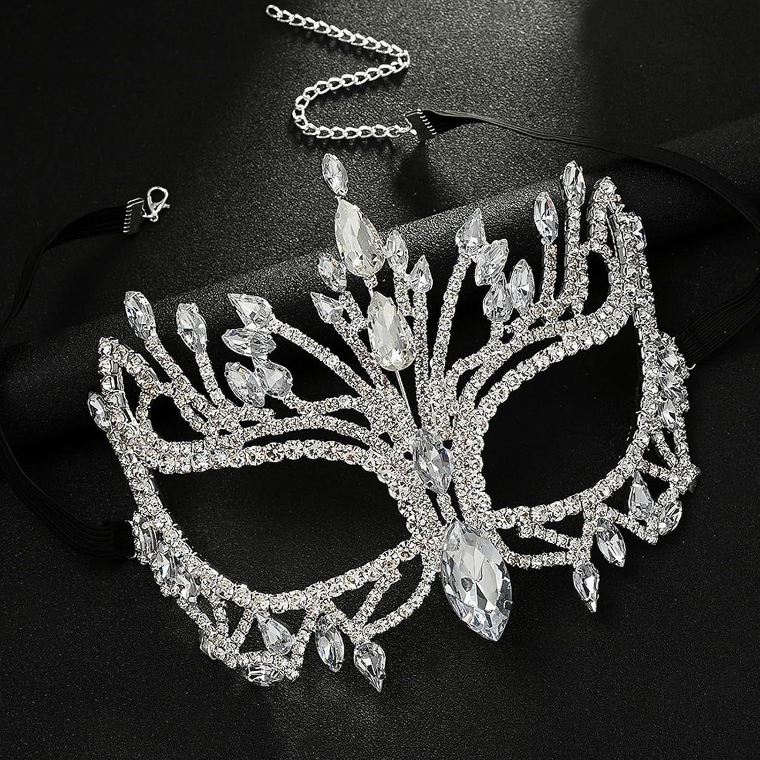 Unveil your inner star with our exquisite crystal mask, a must-have accessory for a glamorous occasion. This crystal masquerade mask is meticulously adorned with shimmering silver rhinestones, creating a dazzling effect that captures the light and turns heads. The mask features an intricate design with multiple large rhinestones, adding an extra touch of charm and sophistication. Whether you're attending a masquerade, ball, or other festive event, this mask ensures you stand out with elegance and style.◆ Crafted from high-quality copper and embellished with sparkling rhinestones, this crystal face mask combines luxury with comfort. The elastic band design allows for a snug, adjustable fit, making it easy to wear comfortably throughout the day or night. No matter the event—be it a birthday, prom, rave, carnival, or festival—this mask will keep you feeling as good as you look.◆ Perfect for those who love to make a statement, this masquerade rhinestone mask doubles as a stunning piece of masquerade face jewelry, elevating your ensemble with its captivating sparkle. Its unique design ensures you’ll receive numerous compliments and feel like the star of the celebration.Add this stunning masquerade ball mask to your collection and experience the perfect blend of beauty and comfort at your next party or festival.