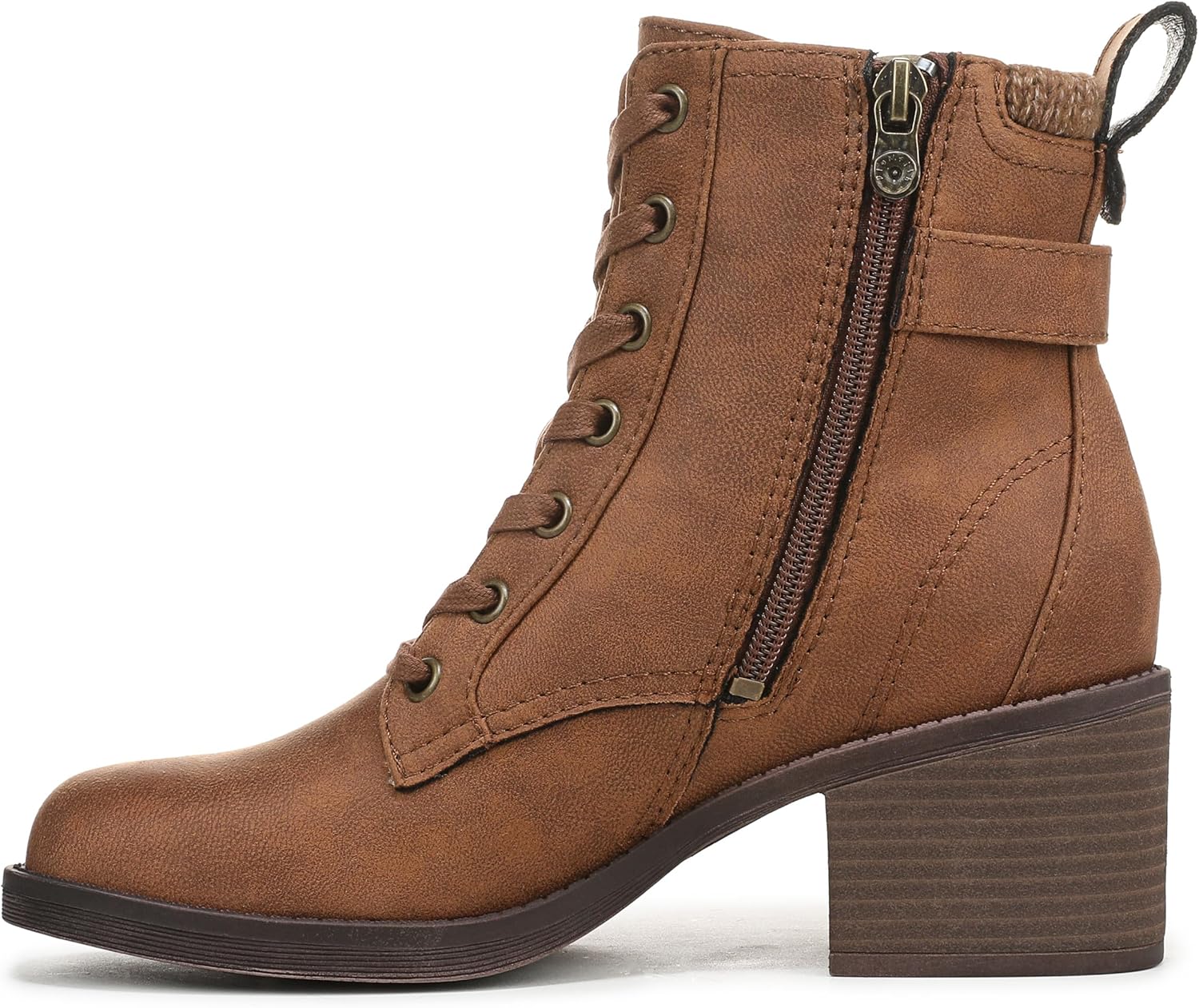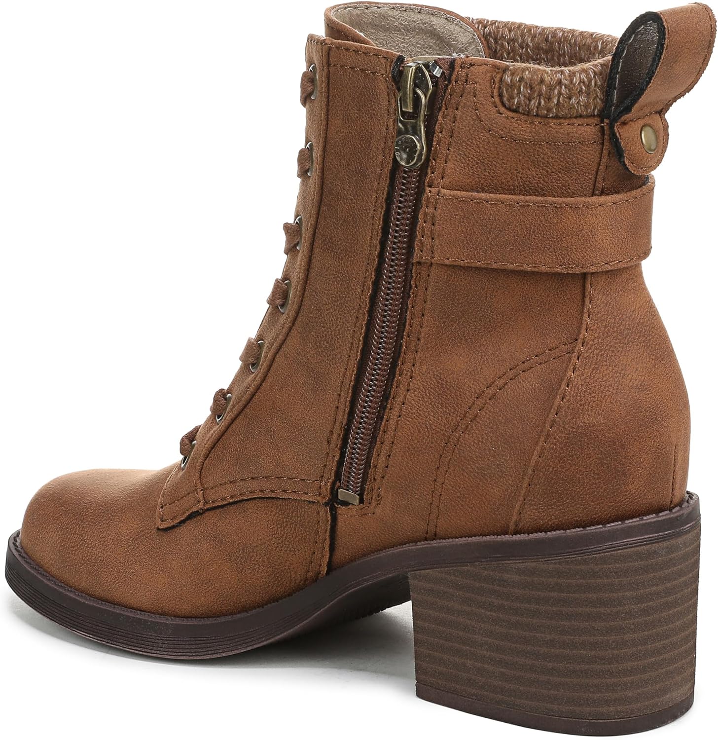 TRENDING CALI STYLE: Bring effortless California flair to your wardrobe with these laidback women's ankle boots, perfect for any casual occasionEASY ON/OFF WEAR: Functional lace-up front and inside zipper make slipping these ankle boots on or off a breeze, offering both adjustability and convenienceALL-DAY COMFORT: Lightweight 2.375 inch block heel and cushioned EVA footbed ensure lasting comfort for every stepSTYLISH DETAILS: Features a sweater knit collar, decorative ankle strap with metallic hardware, and stitched accents to make a statementVERSATILE DESIGN: Crafted from faux leather with a sturdy TPR sole for reliable grip—these round toe booties pair perfectly with jeans, leggings, or dresses for any modern look