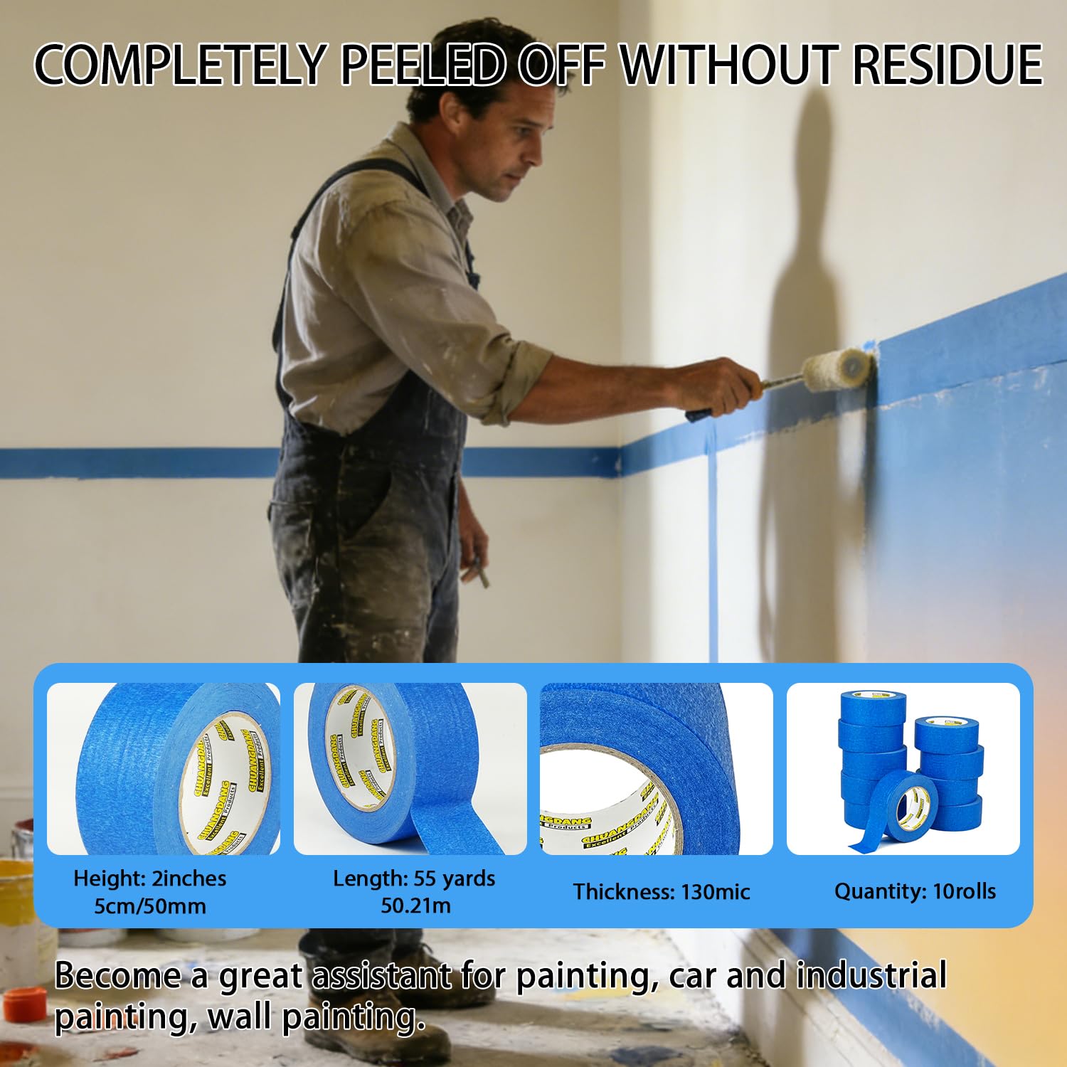 | Recommended Uses For Product | CHUANGDANG Blue Masking Tape can meet your multiple uses, such as partitioning when painting walls, painting, car painting, marking, home decoration, temporary strapping and painting occasions, and when you don't want to damage your walls. At the same time, masking tape is also a very important assistant in children's manual work, marking various containers, as well as decorating parties. |