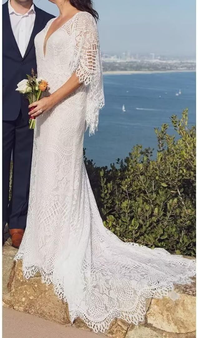 WELCOME TO TIANMEIWe provide high-quality wedding party dresses, formal dresses, evening dress, party gowns and other special occasion dresses, just buy with confidence and we will be pleased to serve you.Boho Wedding Dress Lace Long Sleeves Boho Wedding Dresses for BrideHow to choose size: Measure your body and compare it with our size chart. If you want a more accurate fit, please send us your measurements as follows:1. Bust___inches2.Waist___inches3.Hips___inches 4.Hollow to floor ___inches5.Height(without shoes)___inches6.The date you need the dress:____Size 0: Bust=32 Waist=24.75 Hips=35.75 Hollow to floor=58; Size 2: Bust=33.25 Waist=26 Hips=36.5 Hollow to floor=58; Size 4: Bust=34 Waist=27 Hips=37.5 Hollow to floor=58; Size 6: Bust=35.25 Waist=28.25 Hips=38.5 Hollow to floor=59; Size 8: Bust=36.5 Waist=29 Hips=39.5 Hollow to floor=59; Size 10: Bust=37.5 Waist=30.25 Hips=40.25 Hollow to floor=60; Size 12: Bust=38.5 Waist=31.5 Hips=42 Hollow to Floor=60; Size 14: Bust=40 Waist=33 Hips=43.25 Hollow to floor=61; Size 16: Bust=41.75 Waist=34.75 Hips=44.5 Hollow to floor=61; Size 16W: Bust=43.25 Waist=36.5 Hips=46.5 Hollow to floor=61; Size 18W: Bust=45.75 Waist=39.25 Hips=48.5 Hollow to floor=61; Size 20W: Bust=47.25 Waist=41.5 Hips=50.5 Hollow to floor=61; Size 22W: Bust=49.25 Waist=43.25 Hips=52.5 Hollow to floor=61; Size 24W: Bust=51.5 Waist=45.5 Hips=54 Hollow to floor=61; Size 26W: Bust=53.5 Waist=47.75 Hips=56.25 Hollow to floor=61. Size 28W: Bust=56 Waist=50.75 Hips=58.75 Hollow to floor=61. Have any need please take the initiative to contact us, we will be ready to answer for you. Thank you for coming.
