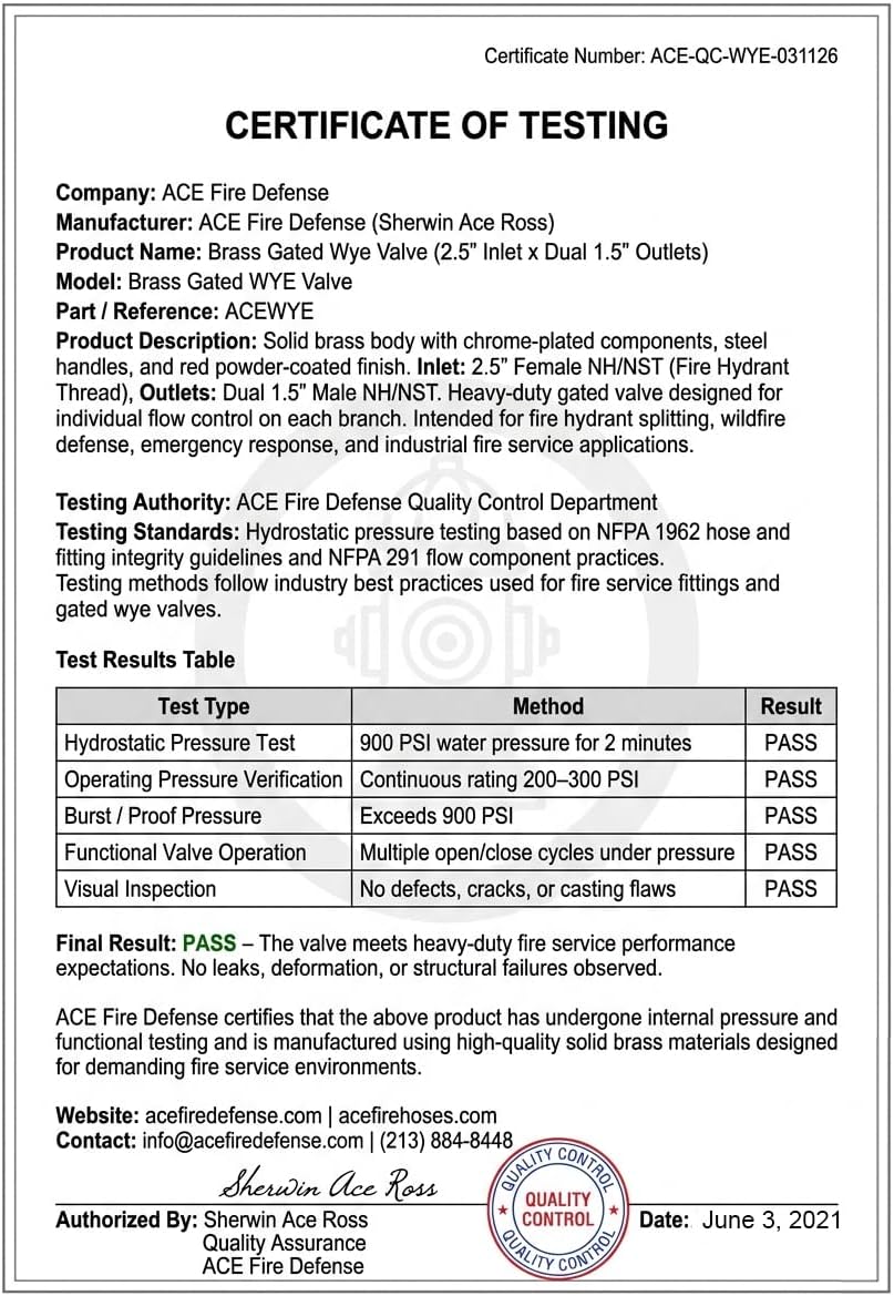 | Manufacturer | Ace Fire Preparedness |