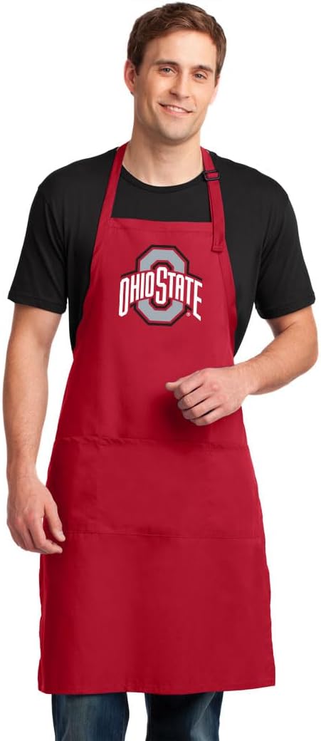 This Deluxe Large Ohio State University Apron is A Fantastic OSU Buckeyes Gift for a Man or Woman! This Broad Bay full-length large OSU Buckeyes apron features an adjustable neckband, long waist ties, and multiple front pockets. Great at the barbecue grill or in the kitchen, or for Ohio State University tailgating. This high quality large Ohio State University apron is machine washable and made with strong 8 oz polycotton stain release fabric. It makes a unique Ohio State University gift idea for a man or a woman! Official OSU Buckeyes Aprons and Large NCAA Ohio State University Aprons for Men - Up to 12% Returned to Support Ohio State University Programs!