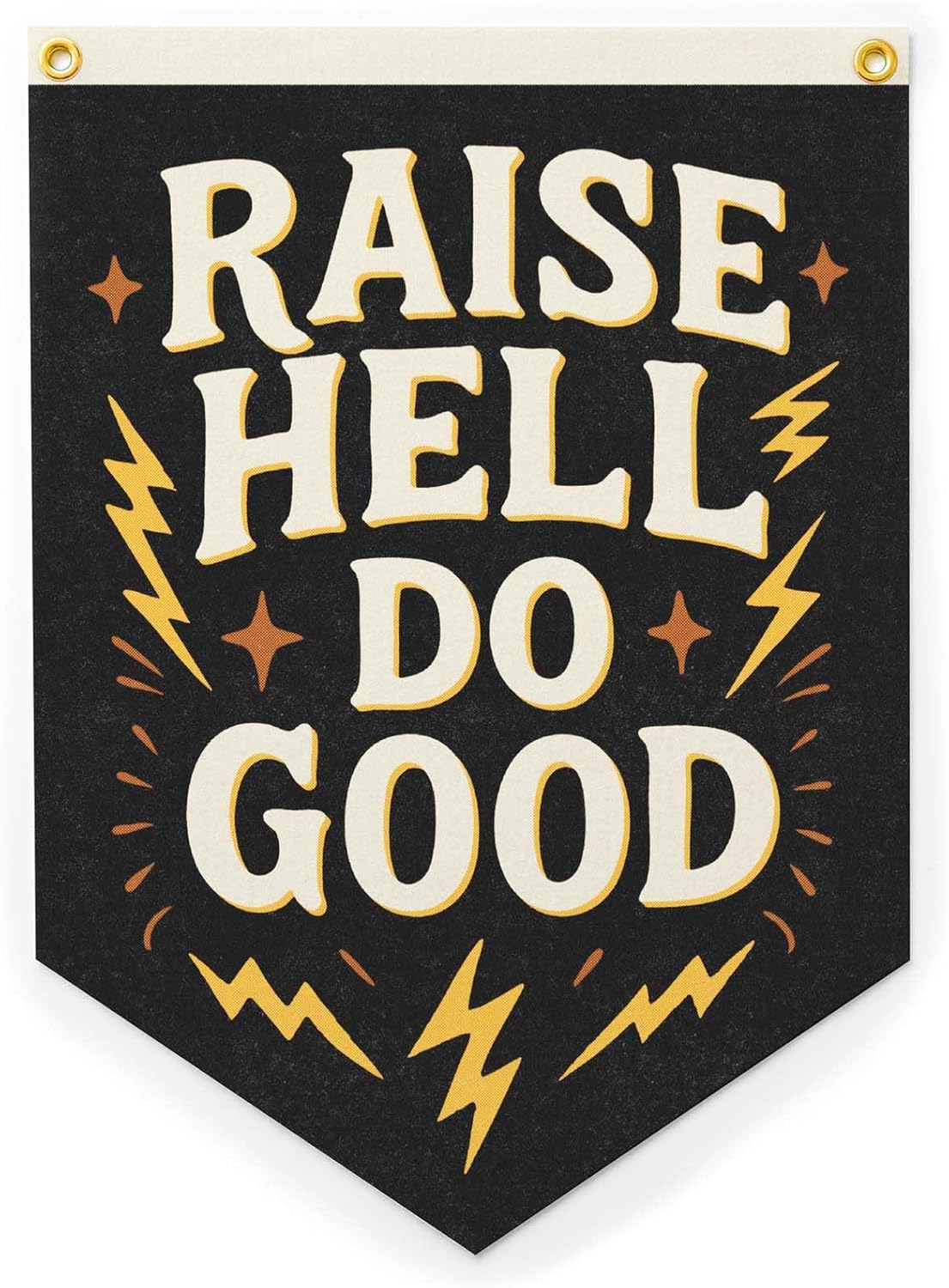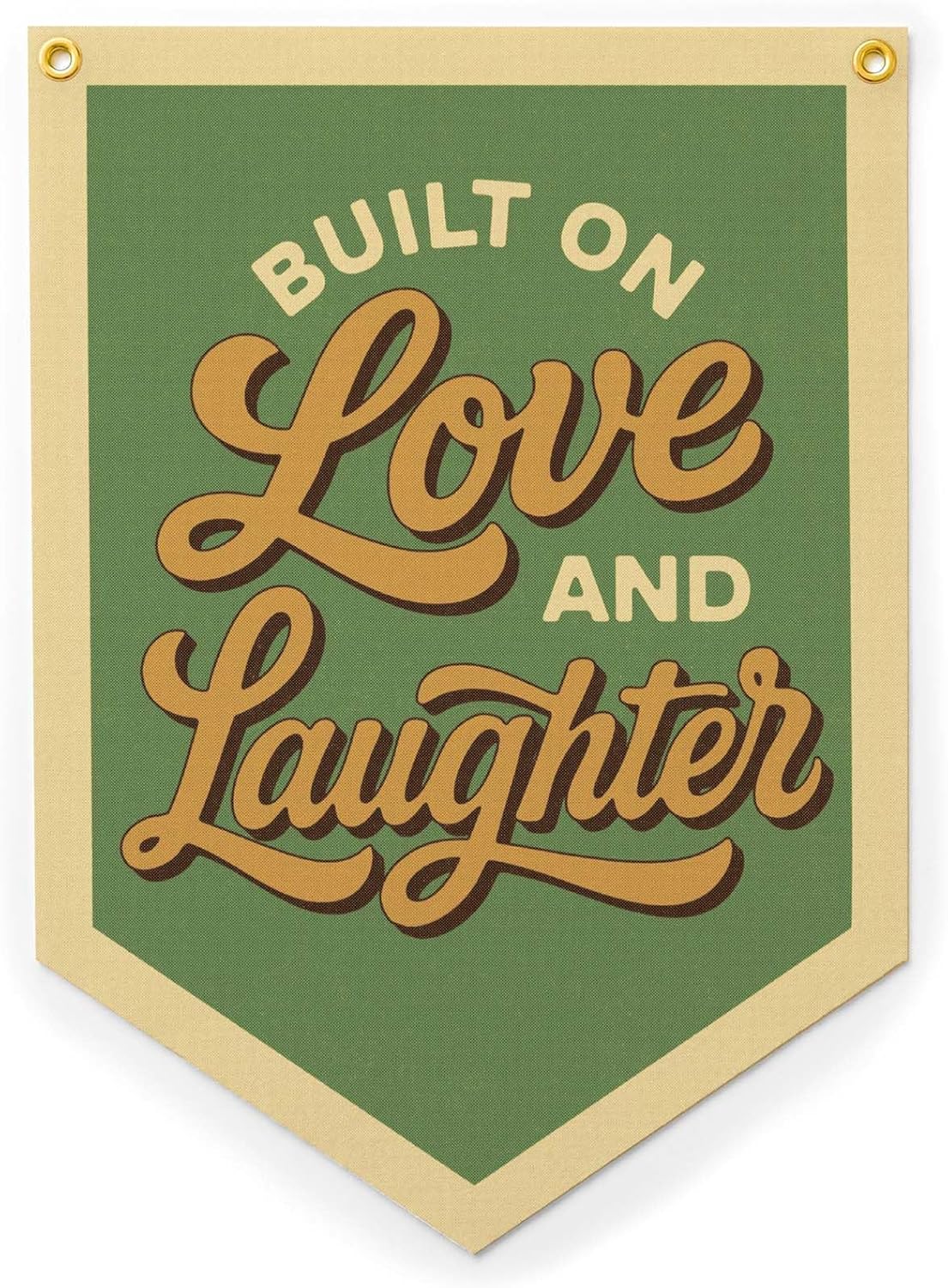 Let your walls tell your story with our Built on Love & Laughter Felt Camp Flag—a joyful reminder of what truly makes a house a home. With its vintage-inspired design and timeless message, this banner is perfect for the spaces where memories are made: family rooms, playrooms, cabins, or anywhere filled with warmth and laughter. The retro-style lettering and bold layout give it a fun, lived-in feel that fits seamlessly into both cozy and modern interiors.This flag also makes a thoughtful gift for so many meaningful moments. Celebrate newlyweds building a life together, welcome new homeowners with a heartfelt housewarming gift, or surprise grandparents who cherish their bustling, laughter-filled home. It’s also a sweet addition to a baby shower gift, nursery wall, or family photo gallery. Handmade in our Maine studio with care and intention, this felt flag is an easy-to-hang, feel-good piece that celebrates the love and joy we live for.We print our designs directly onto felt and add 2 grommets for hanging.16x22 inchesMade one at a time at our small shop in Maine, USA.