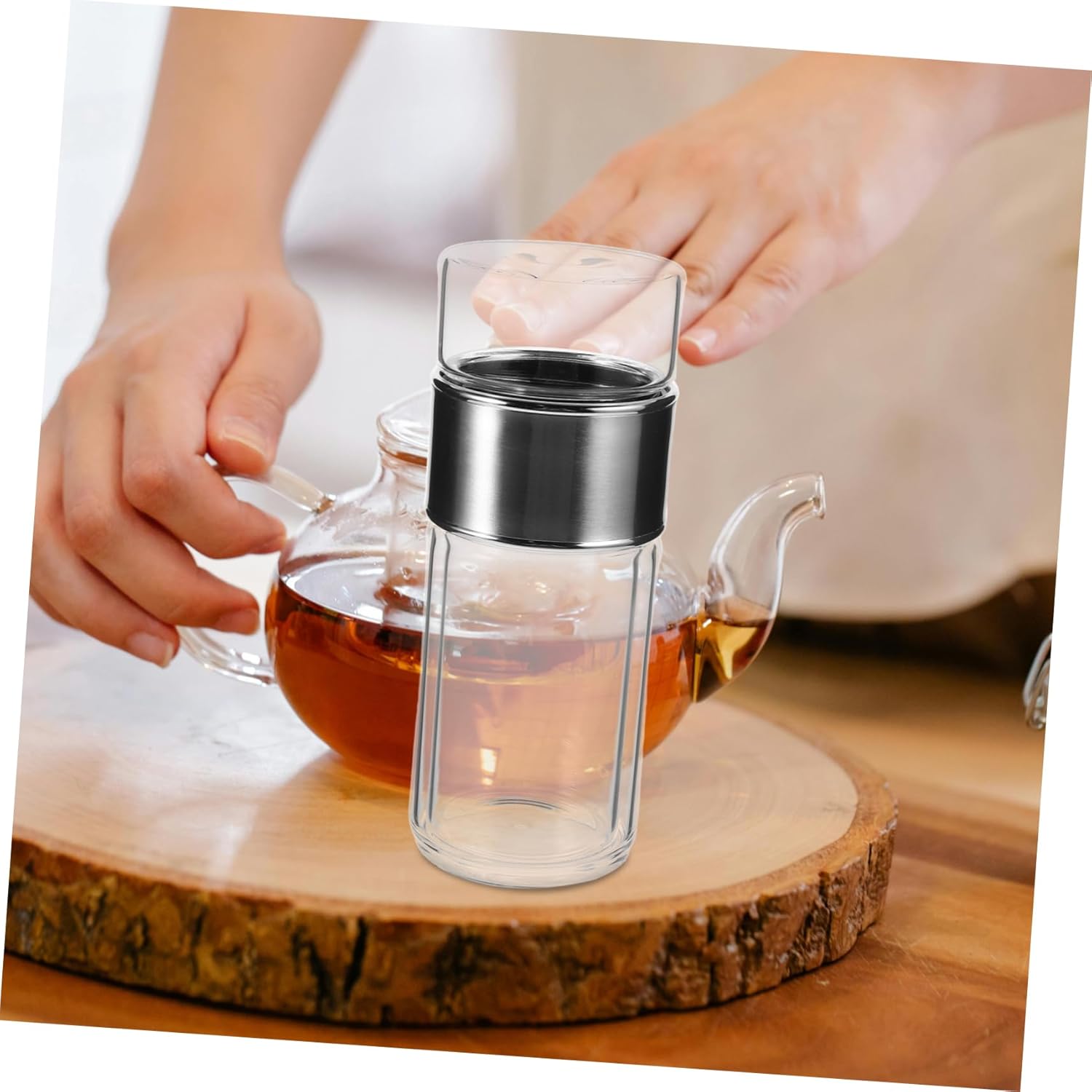 Package List 1 x tea separator cup Characteristics - heat retention: the doublelayer design keeps your tea at the suitable temperature while preventing the outer layer from becoming too hot tea infuser water bottle -Color:Silver glass tea cup -Material:High borosilicate glass tea filter cup -Stable glass: crafted, tea separation glass cup providing a clean and enjoyable drinking experience water separation glass cup -Capacity: 420 ml tea infuser glass cup -Size:21.80X21.80X7.00cm/8.57X8.57X2.75in tea water bottle -Multiuse: suitable for brewing tea, coffee, and other beverages, offering great versatility and convenience tea strainer cup -Builtin infuser: the integrated tea infuser makes it easy to brew loose leaf tea without any mess tea cup with strainer -Ideal : a thoughtful and stylish present for tea lovers and anyone who enjoys elegant drinkware tea infuser glassGoods Descriptiontea cup with strainer The double-layered glass provides superior insulation, while the integrated tea infuser the brewing process.tea infuser glass cup Its elegant design and practical features make it ideal for enjoying your favorite loose leaf tea anytime, anywhere.tea filter cup This tea separation glass cup combines style and functionality, making it an essential addition to any tea lover's collection