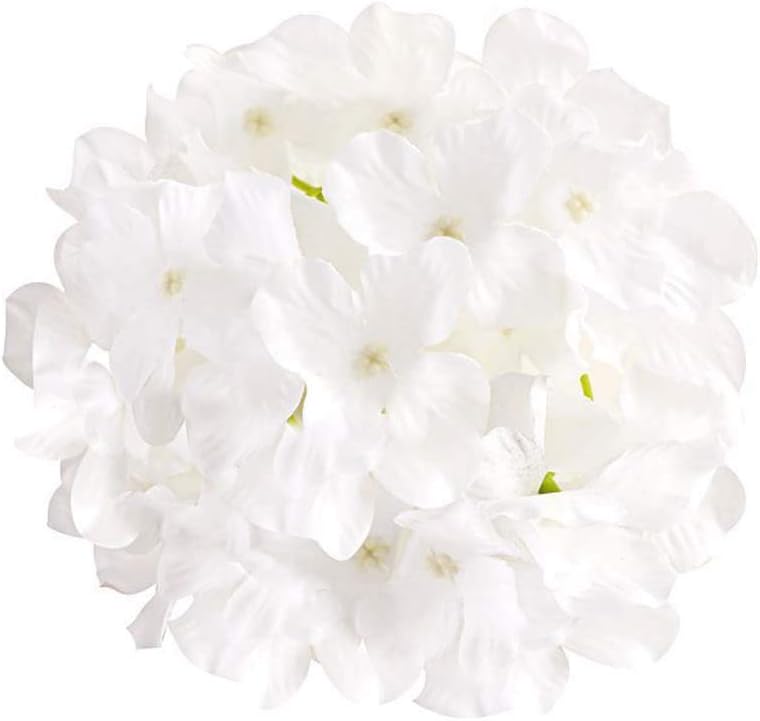 Beautiful flowers to a comfortable and friendly atmosphere. They can be used as decorations for wedding, Christmas, birthday or Halloween, etc. It can DIY wedding arch flowers, wedding car decoration flower, brooch, garland and so on. Features - Material: Plastic and cloth. - Flower Diameter: 15cm / 6 inch - The flower heads are realistic and beautiful. - Great for embellishing clips, headbands, hats, clothes, album pages, cards, photo albums, bows, craft projects, weddings, parties, etc. Package Including 50 x Silk Hydrangea Flowers