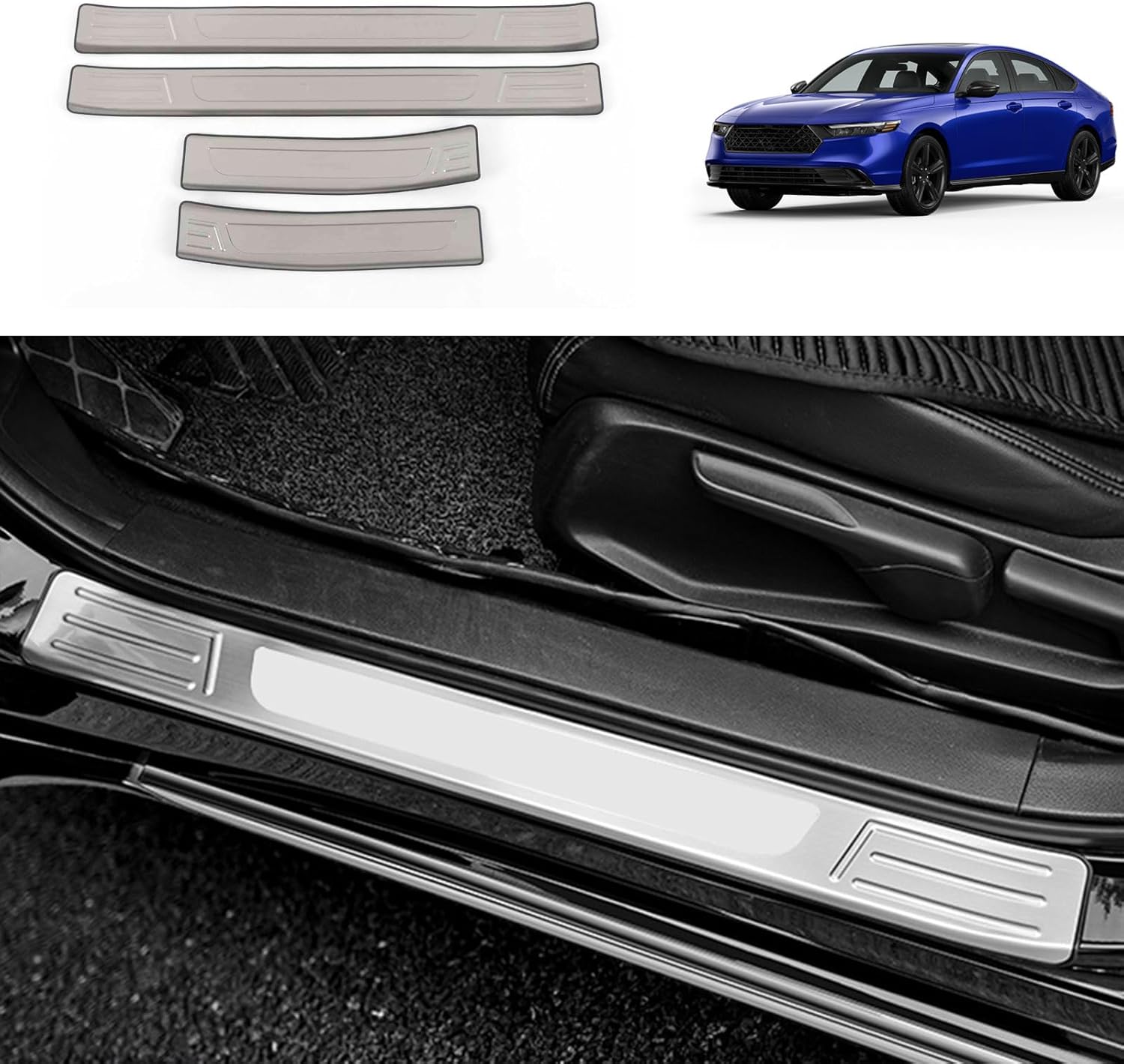 Basic Product Information: Compatible With Honda Accord 2023 2024 2025 TIP: Please check whether your car model is consistent with the product before buying the product to prevent buying the wrong product.After receiving the product, make sure to determine where the product will be installed, and then compare the product and the installation location. installation method: (1) Use self-adhesive on the back of the item. (2) Clean the surface to be pasted. Keep dry and clean. (3) Please press hard at least 2 minutes after installation, especially the edges. (4)If the weather is cold. Please use a hair dryer (hot air) for the best connection. (5) Do not touch water and keep dry for at least 72 hours after installation. Otherwise it will fall off easily.★Material Type and Product Features: Made of premium Stainless Steel.Colors: Black Brushed Finish、Silver.It comes with double side tape on the back for you to simply stick on the original panel.They show your charming and highlight your dear car.It will give your car a brand new unique look in minutes!Package includes: include 4 pieces