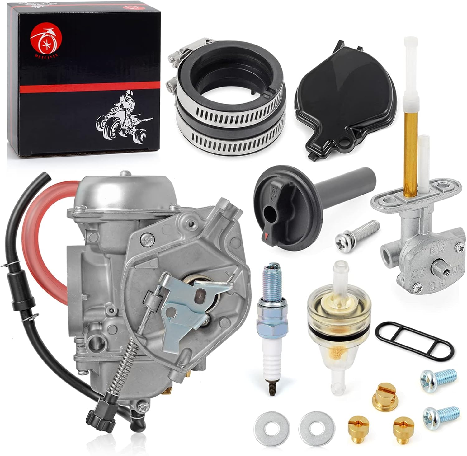 Package: 1x Carburetor 1x Intake Manifold 1x Spark Plug 1x Fuel filter 1x Fuel Petcock 1x Lever Manufacturer Part: 15004-0041 51023-1402 15003-0093 15003-1686 16065-1379 14030-1054 This Accessories fits the following models: For Kawasaki Prairie 360 KVF360 4x4 2003-2013