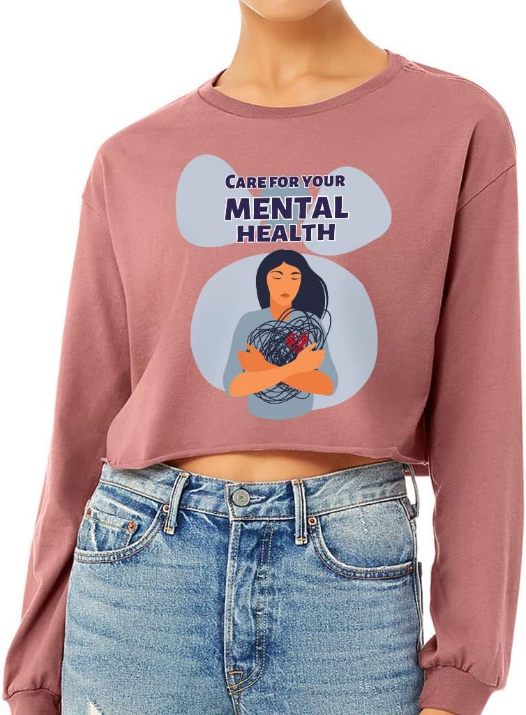 Simple but elegant Care for Your Mental Health Cropped Long Sleeve T-Shirt is easy to pair with shorts, skirts, and skinny jeans for casual and chic looks. Perfect to layer with cardigan, blazer, jacket or knitwear. You will really love Print Women's T-Shirt. Suitable for casual, work, date, weekend, holiday, party, club, pub, office, house, outdoor, vacation, maternity etc. A must-have long-sleeve shirt for women!