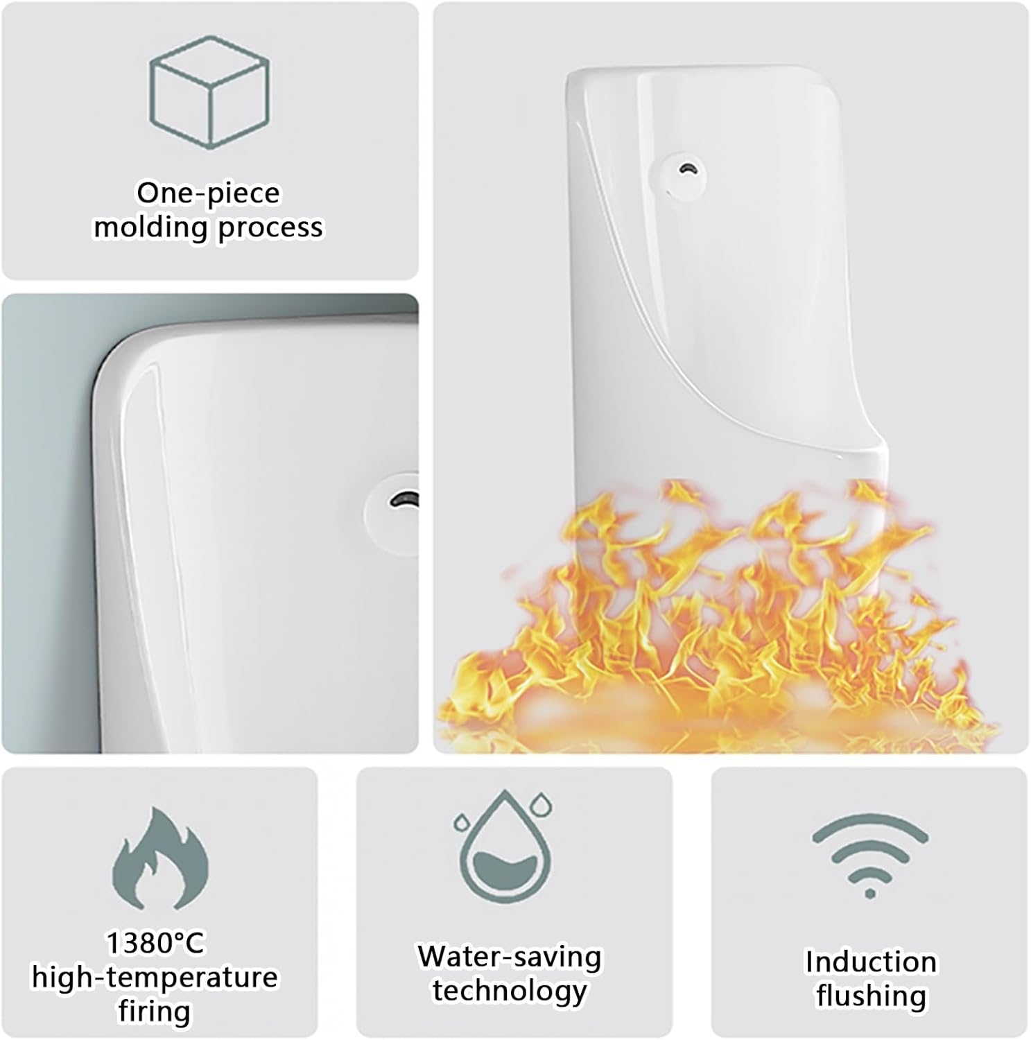 Ceramic Urinal, Hanging Urinals For Men, Built-in Sensor Flushing, For Men Male Urinal For Home, Bar, Hotel Public Toilets Its hanging urinals for men design allows easy wall-mounting, saving valuable floor space while enhancing the appearance of any restroom. The smooth ceramic surface is not only elegant but also resistant to dirt, making daily cleaning faster and easier.Equipped with a built-in sensor flushing system, this urinal ensures a completely touch-free experience, enhancing hygiene and reducing the spread of germs. It automatically flushes after use, preventing bad odors and keeping the restroom fresh at all times.Please Note:1. Due to different measurement methods, there may be an error of 1-3CM, which is within the normal range. Please refer to the actual product!2. Due to different monitors, the product may have a slight color difference, please understand