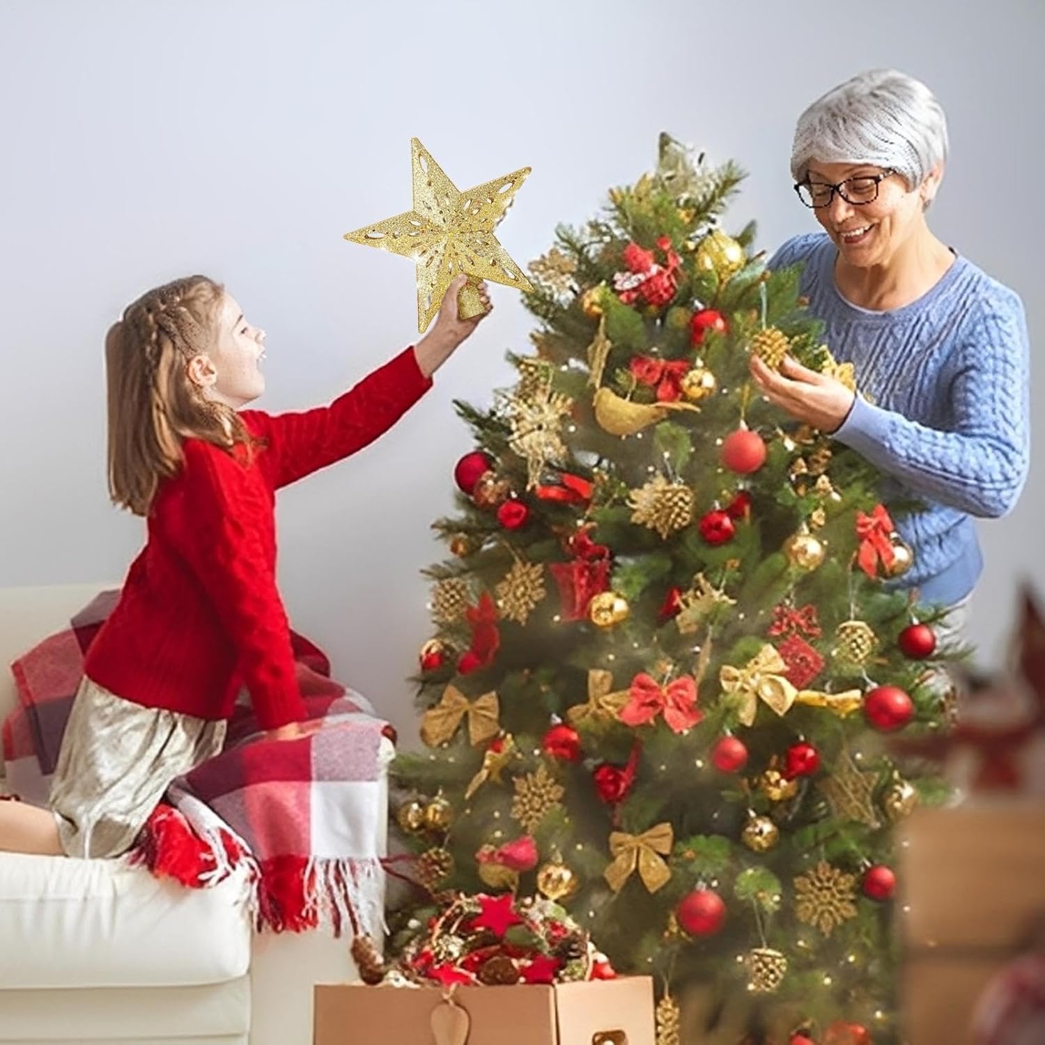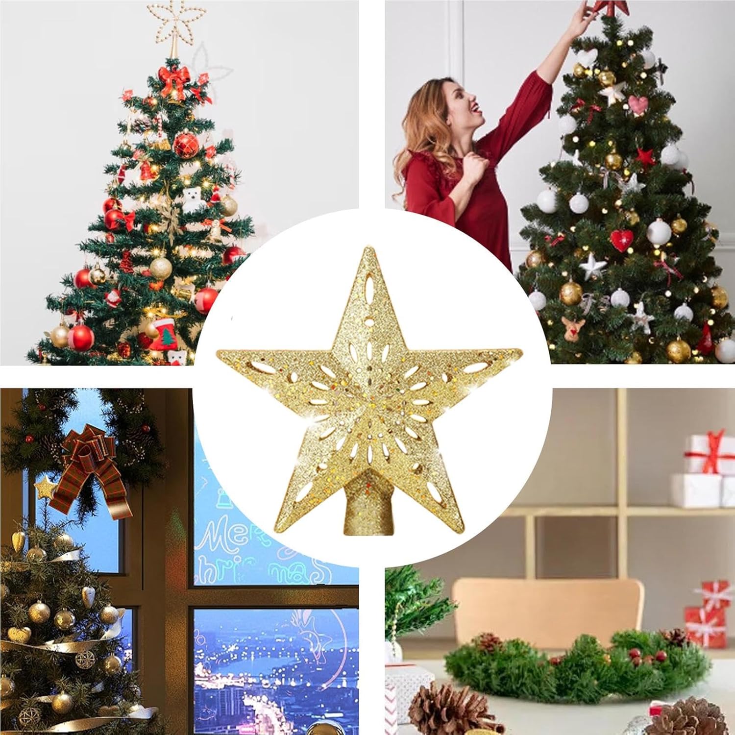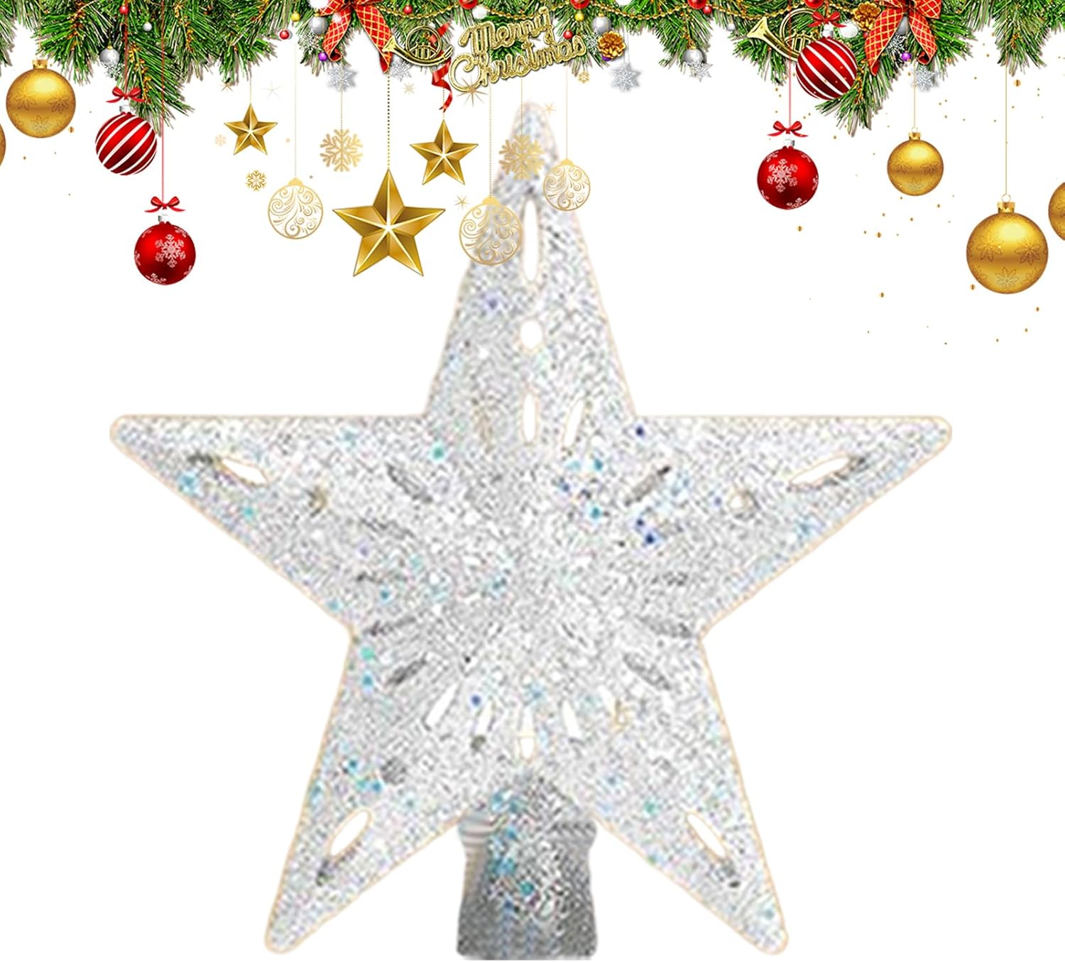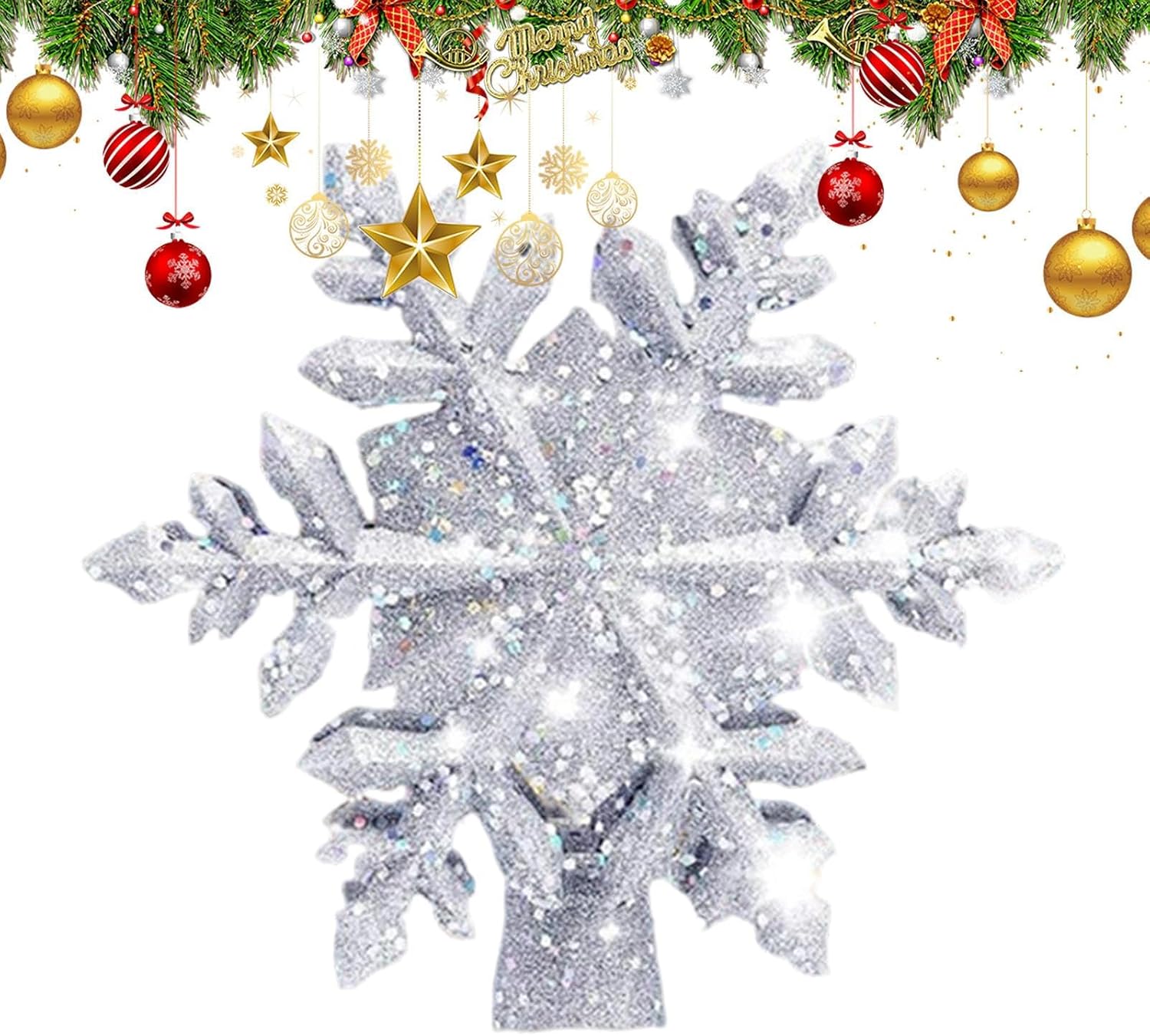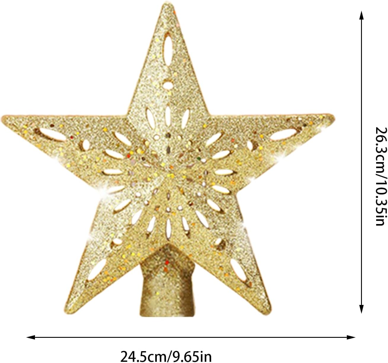 This lighted tree topper brings a radiant touch to your decor with warm built-in LED lights and a 450g ABS frame. It provides a secure and stable fit while on the tree and is easy to move or reposition thanks to its compact design. Battery operated, eliminates complicated wiring and fits into any environment from apartment rooms to church or office celebrations. Add it as a sparkling centerpiece for family gatherings, photo backdrops and holiday displays. Specification: Product material: ABS Snowflake size: about 23.5x22.5cm/9.25x8.86inch Size of spiked star: about 24.5x26.5cm/9.65x10.35inch Product Weight: 450g Product List: 1 x Christmas tree decoration. Notes: Due to the different lighting and screen settings, the item's color may be slightly different from the picture. Due to the difference in manual measurement, please allow 1-3cm size difference.