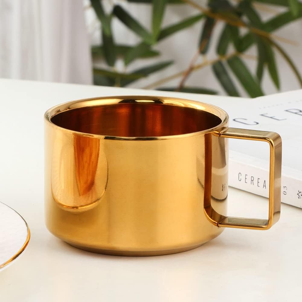 ABOUT COLOR MEFlatware is an important utensil in our daily life. A set of high-quality silverware can enhance your daily dining experience. We have been committed to the design, production and sales of various stainless steel silverware for many years, hoping to provide each customer with healthy, safe and diverse style tableware and kitchenware.SATISFACTION GUARANTEEIf you are interested in this stainless steel coffee mug set, JUST ADD TO CART NOW. If you find any problems with our insulated coffee cup set, please contact us and we will do our best to solve it for you. Hope that every order will bring a positive experience.FEATURES OF PRODUCT1. 6.8 Us Fl Oz2. 100% Stainless Steel3. Mirror Polishing4. Eco-Friendly Titanium Coating5. Double-Layer Heat Insulation6. Anti-Fall & Anti-Collision7. Simple And Elegant Style8. Dishwasher SafePACKAGE CONTENTS2* Espresso Coffee Cups2* Saucers2* Espresso SpoonsSIZEColor: rainbowCoffee Cup: 6.8 ounces (Capacity), 4.13 inches (Length), 2.17 inches (Height), 4.19 ounces (Weight)Saucer: 5.39 inches (Diameter), 3.68 ounces (Weight)Mixing Spoon: 5.71 inches (Length), 0.58 ounces (Weight)USING INSTRUCTIONS1. Please wash the coffee tumbler with warm soapy water before first use to make sure no manufacture residue.2. Please DO NOT use a wire brush or any hard sponge to clean this demitasse cups to keep its smooth surface.3. Please clean and dry the milk cup after use, and store it in a dry place to ensure its durability.