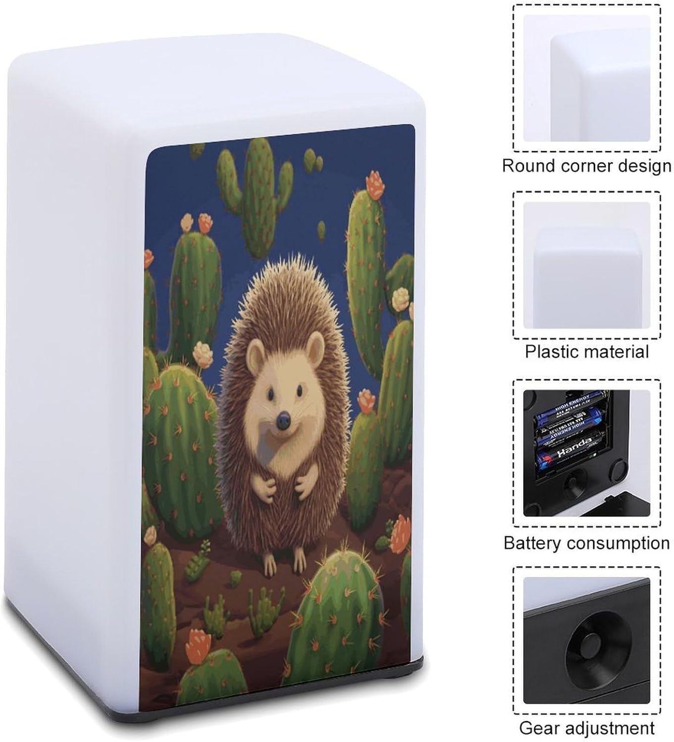 Tired of groping in the dark at night? Looking for a desk lamp that's both practical and stylish? Our Hedgehog Cactus printed small desk lamp is the solution you've been looking for—designed to make everyday life easier and more personalizedSay goodbye to the same old, cookie-cutter desk lamps. We use UV printing technology to imprint your lamp with a design. Even years later, these designs remain visible, transforming an ordinary desk lamp into a treasured keepsakeThe soft, warm glow is a game-changer. For night owls, it means no more waking up your partner. For those afraid of the dark, it's a nighttime companion that dispels the darkness and helps them fall into a deep sleep. Even at the bar, it creates a warm and cozy atmosphere without being overly dazzlingIt's compact and portable, making it easy to place anywhere—by your bed, on a bathroom counter, or to take with friends. Its thick plastic material withstands accidental knocks and can be kept clean with a quick wipeStruggling to find a gift that's both practical and thoughtful? This lamp for dorm ticks all the boxes. It'll be a unique gift that shows you care. Your friends and parents will think of you every time they open it