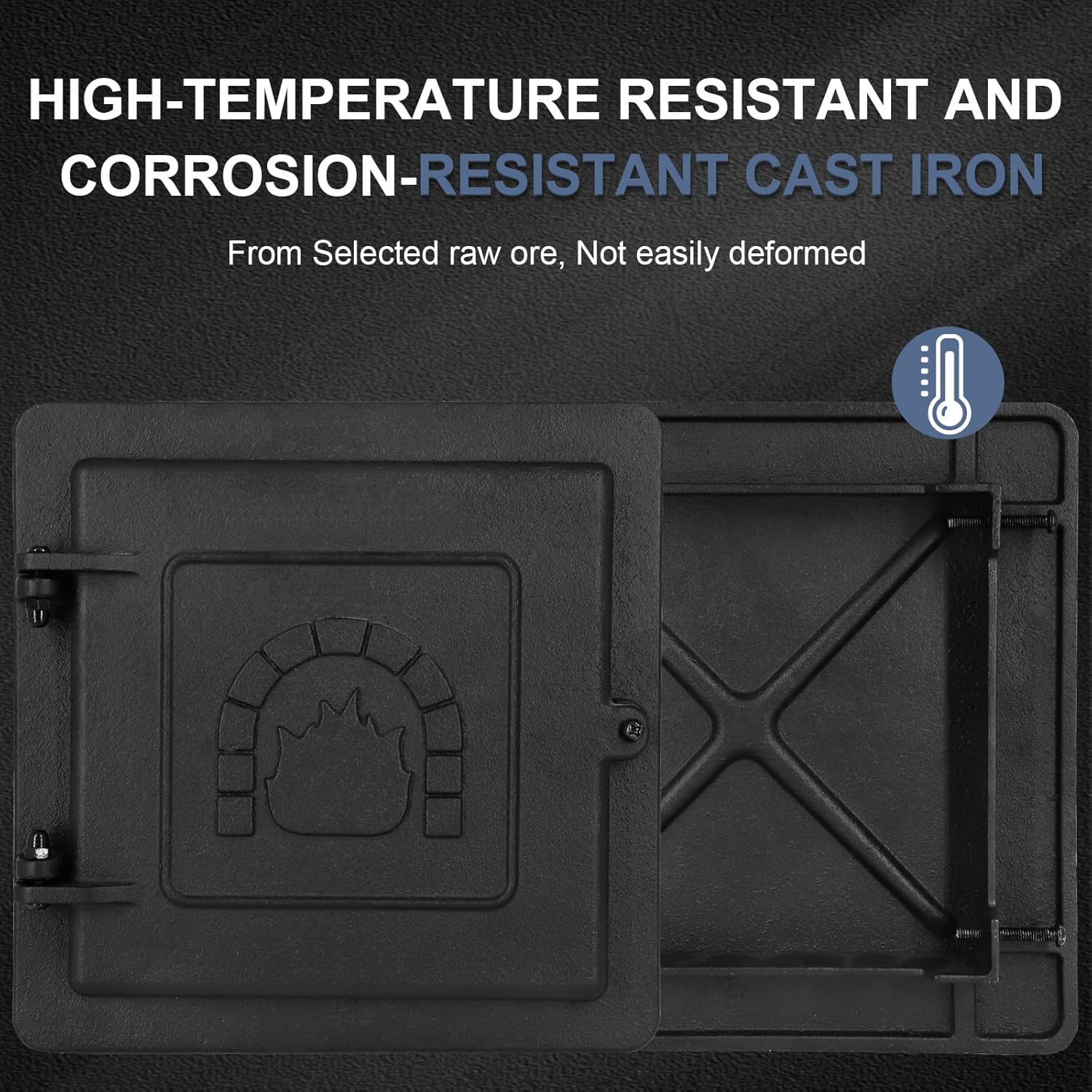 Chimney cleanout door Product Specification ✔ Outer frame size: 10 5/8" x 10 5/8"✔ inner frame size: 8" x 8"✔ material: heavy-duty cast iron